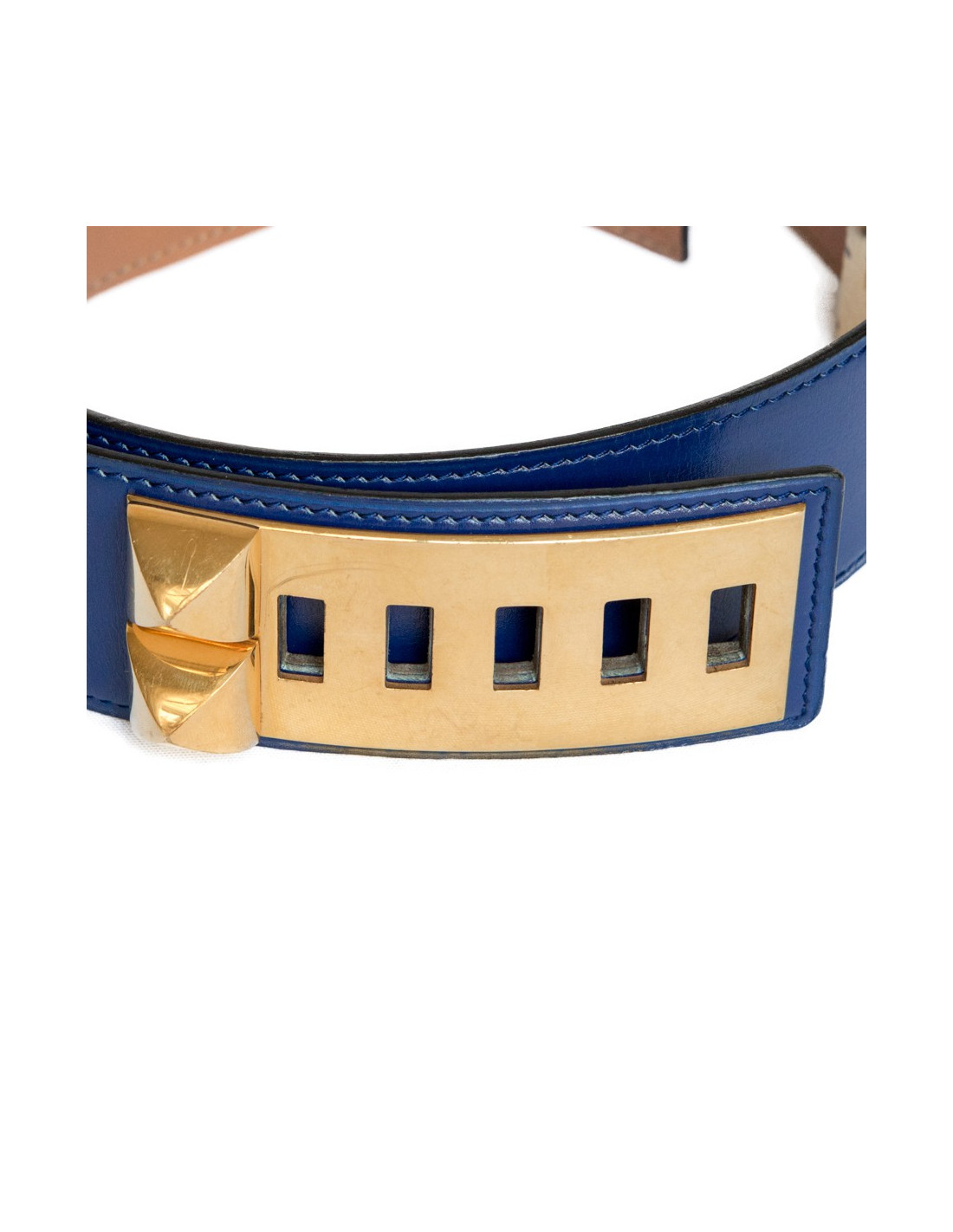 Ceinture t 76 Médor Hermès en cuir box bleu encre et bijouterie plaqué or.