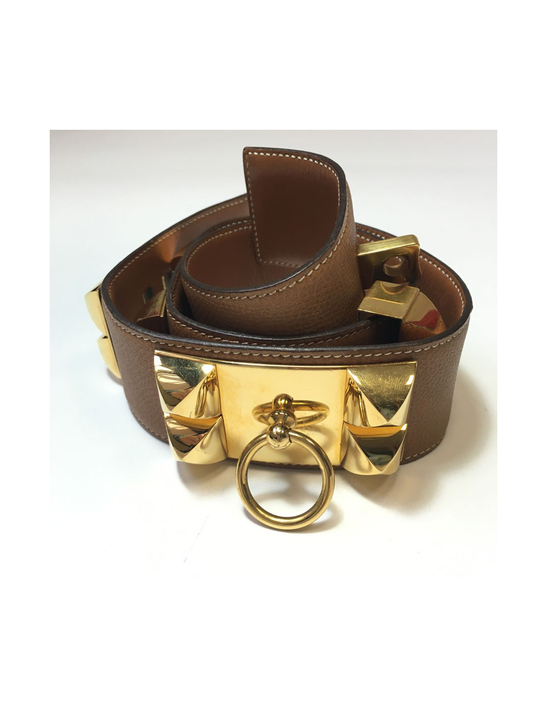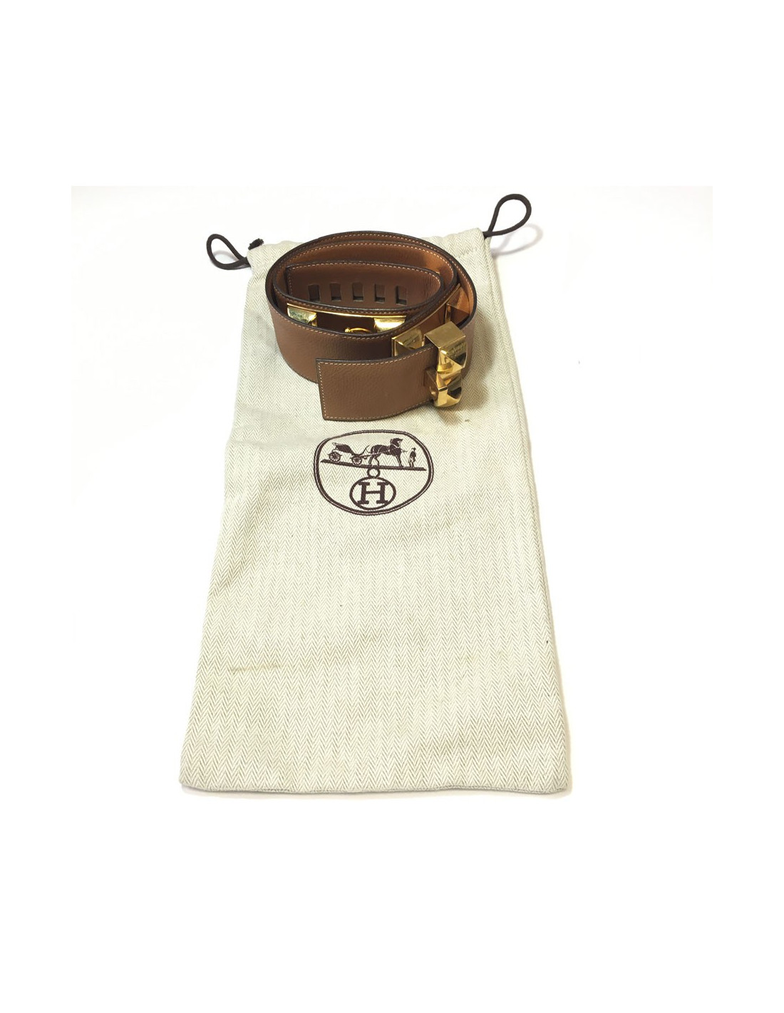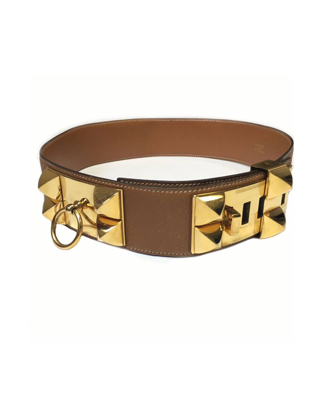 Ceinture "Médor" HERMES en cuir gold et bijouterie dorée