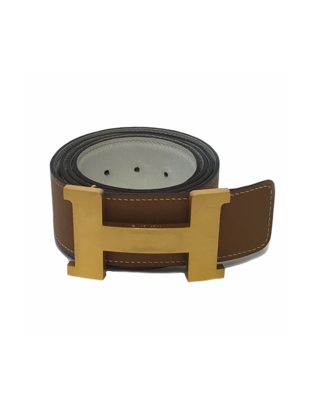 Ceinture HERMES réversible gold et blanc T90
