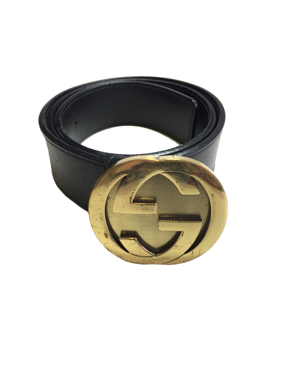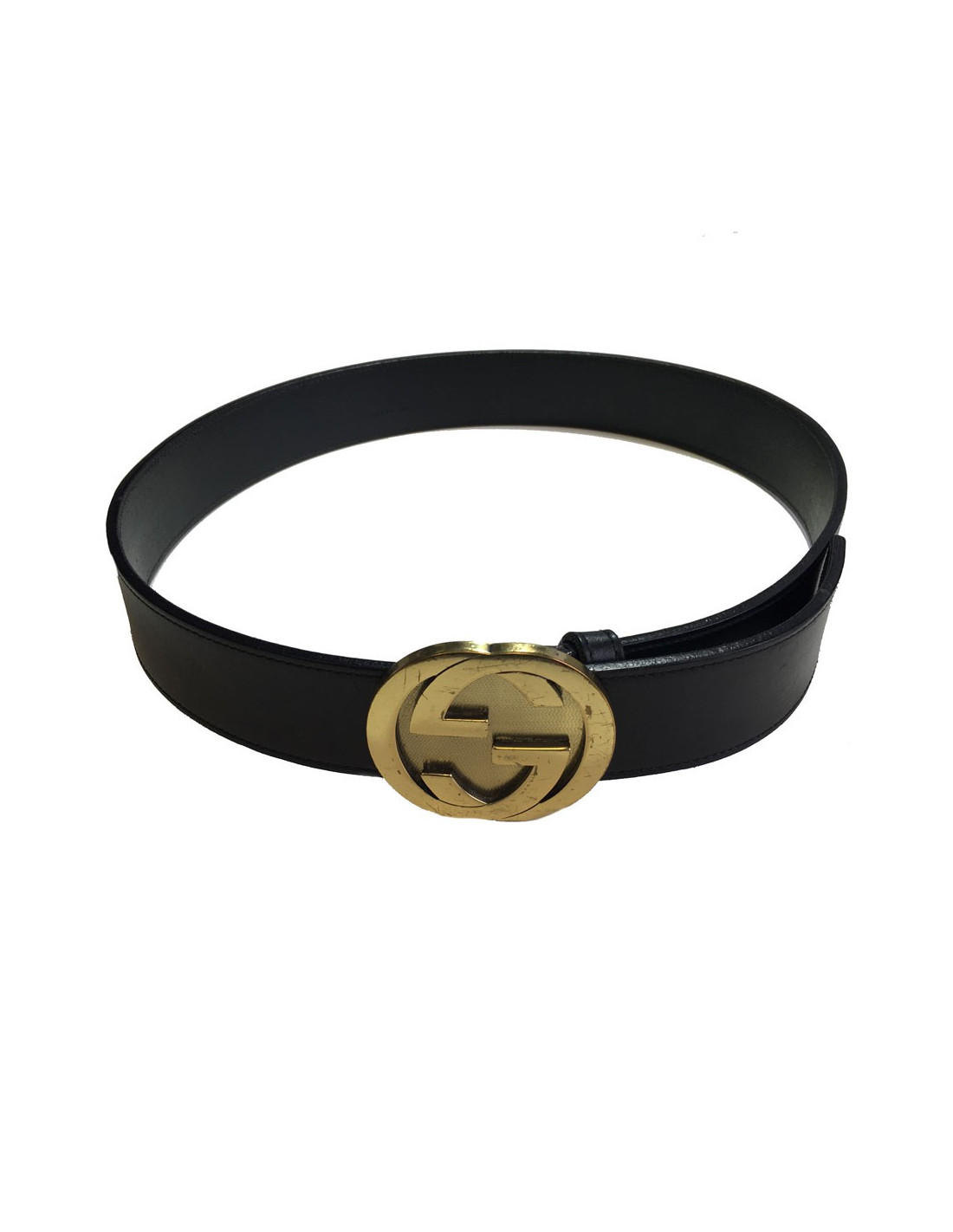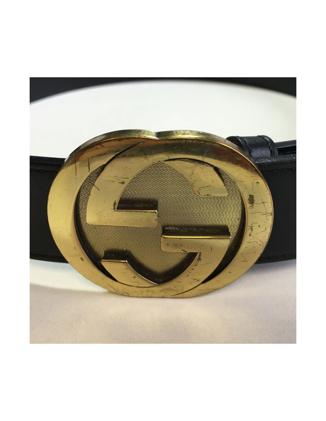 Ceinture GUCCI en cuir noir et boucle dorée taille 85