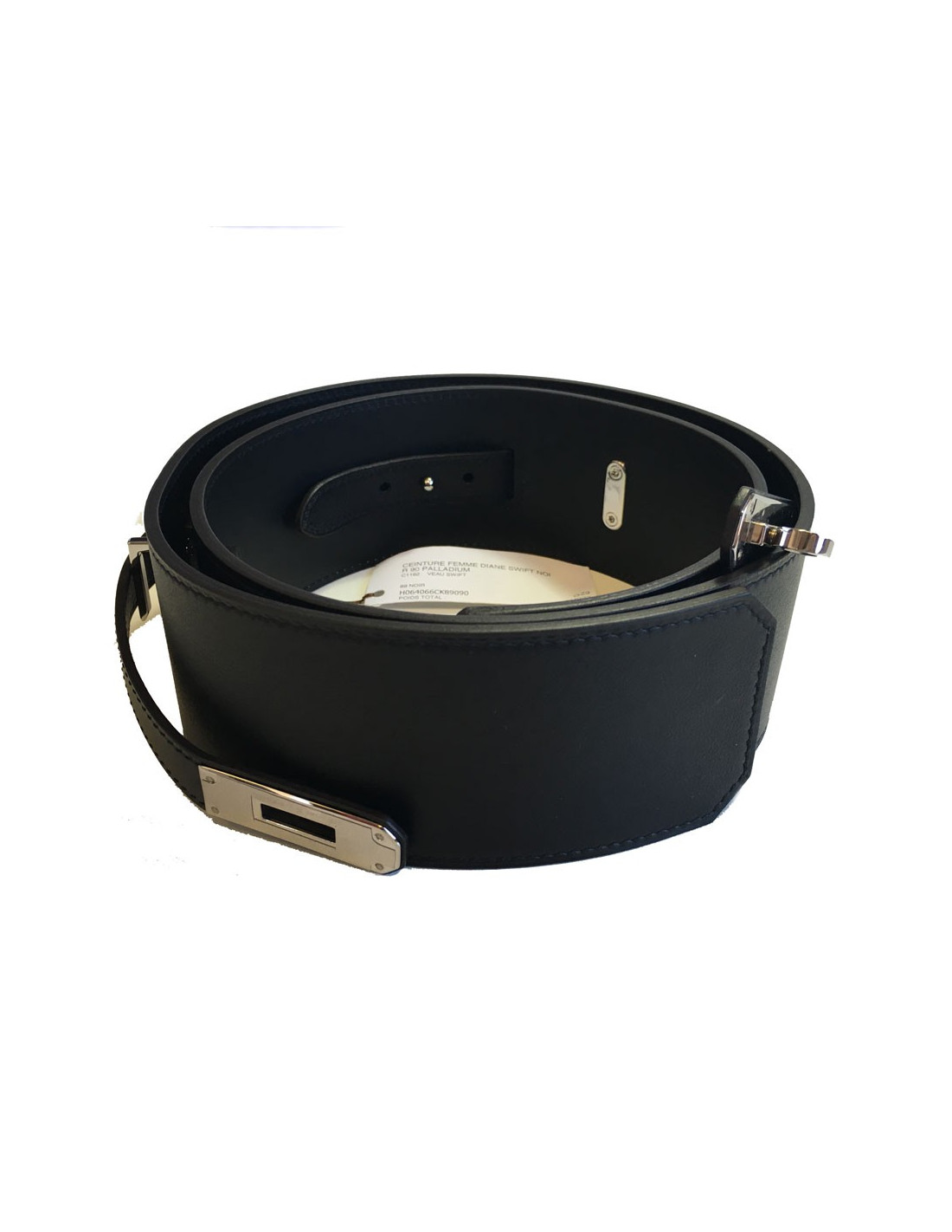 Ceinture HERMES Diane en cuir swift noir T 90