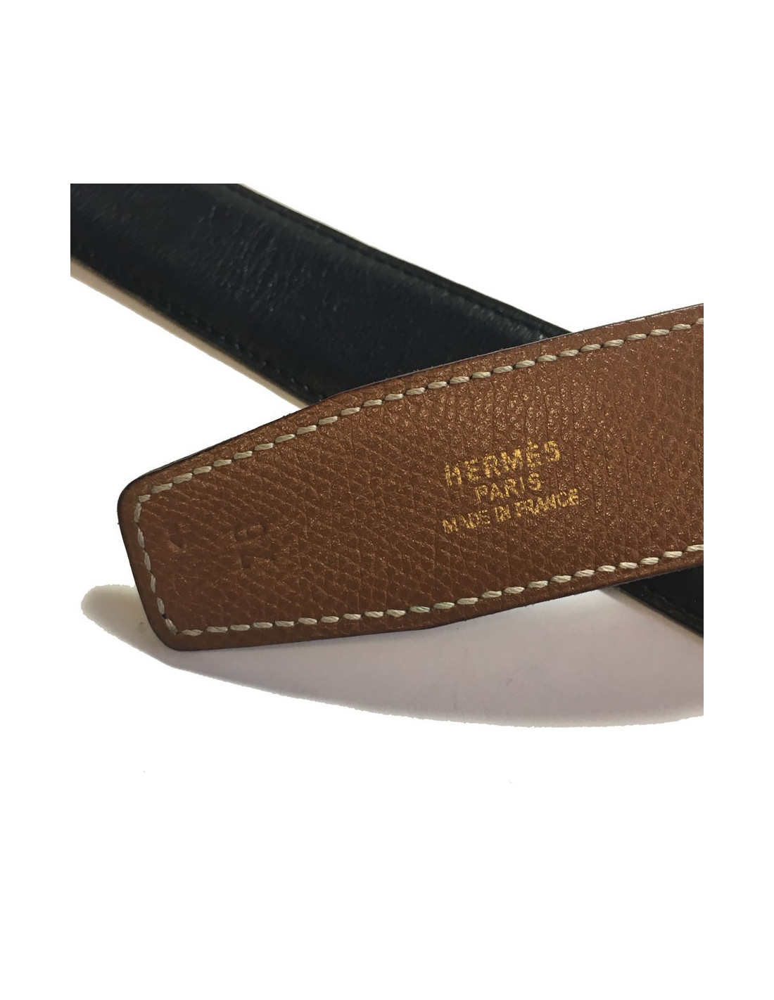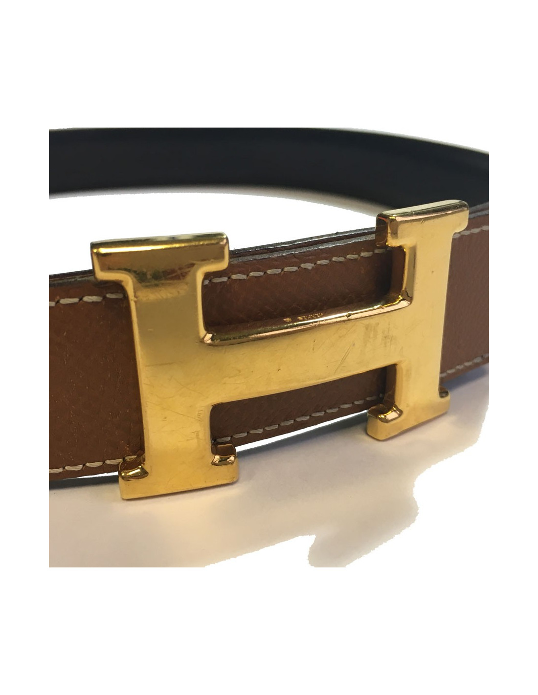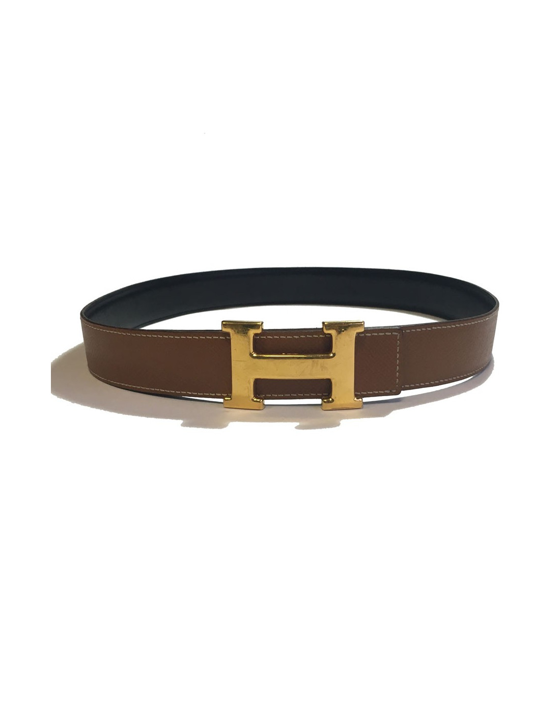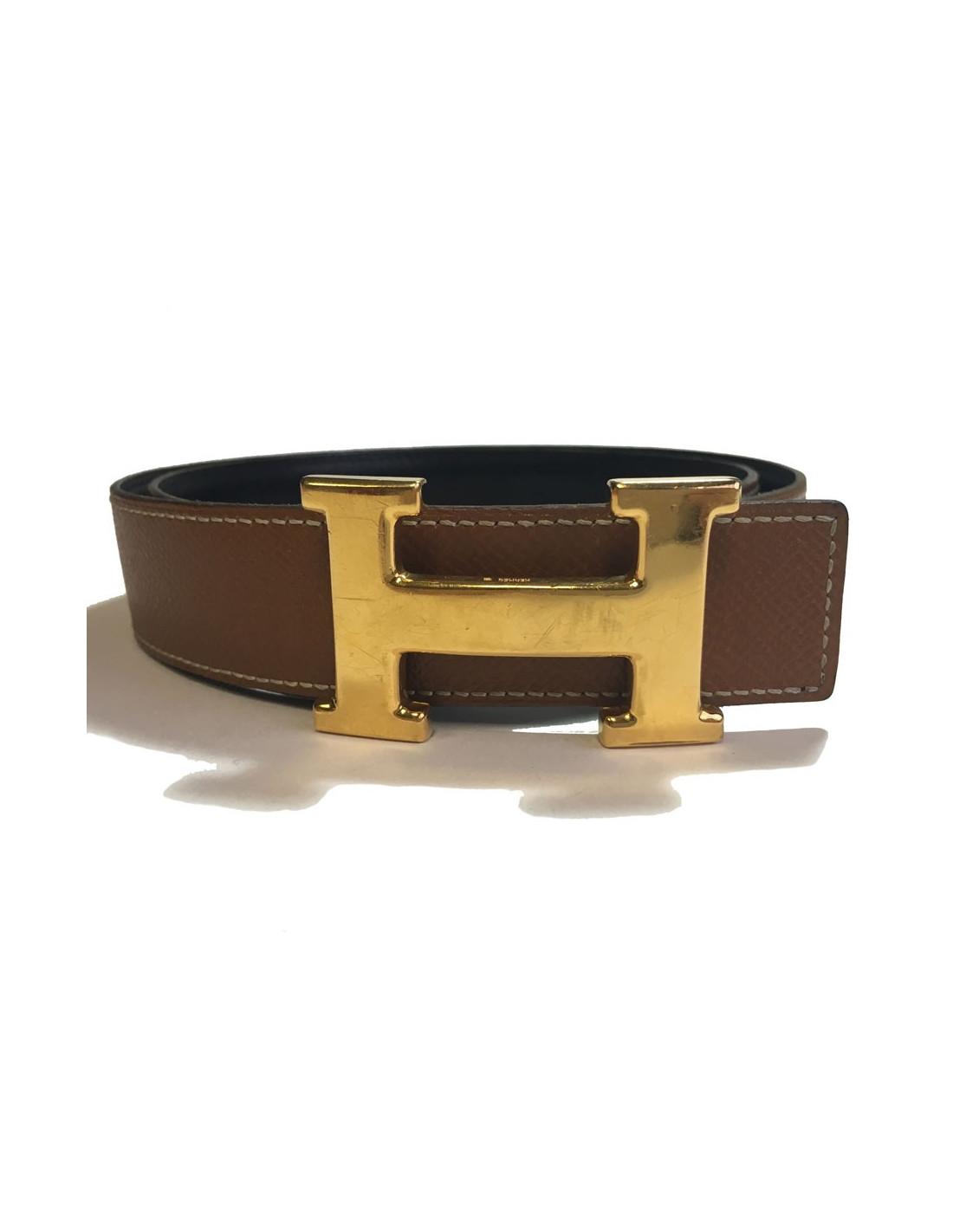 Ceinture H HERMES T76 réversible en cuir gold et marron