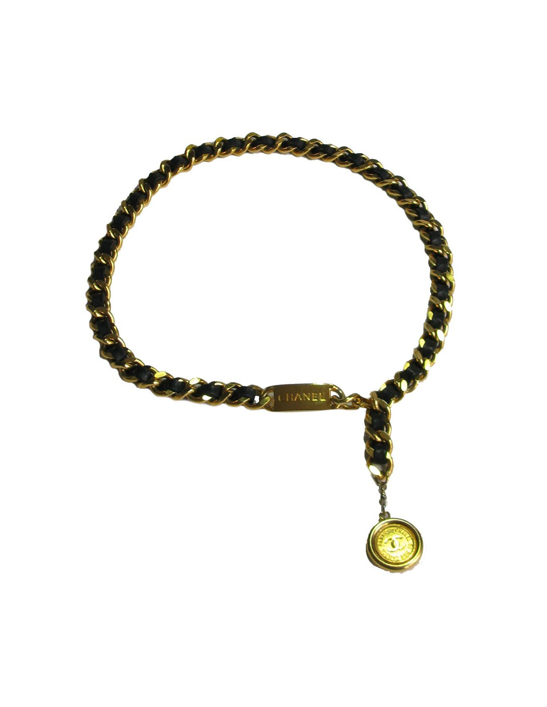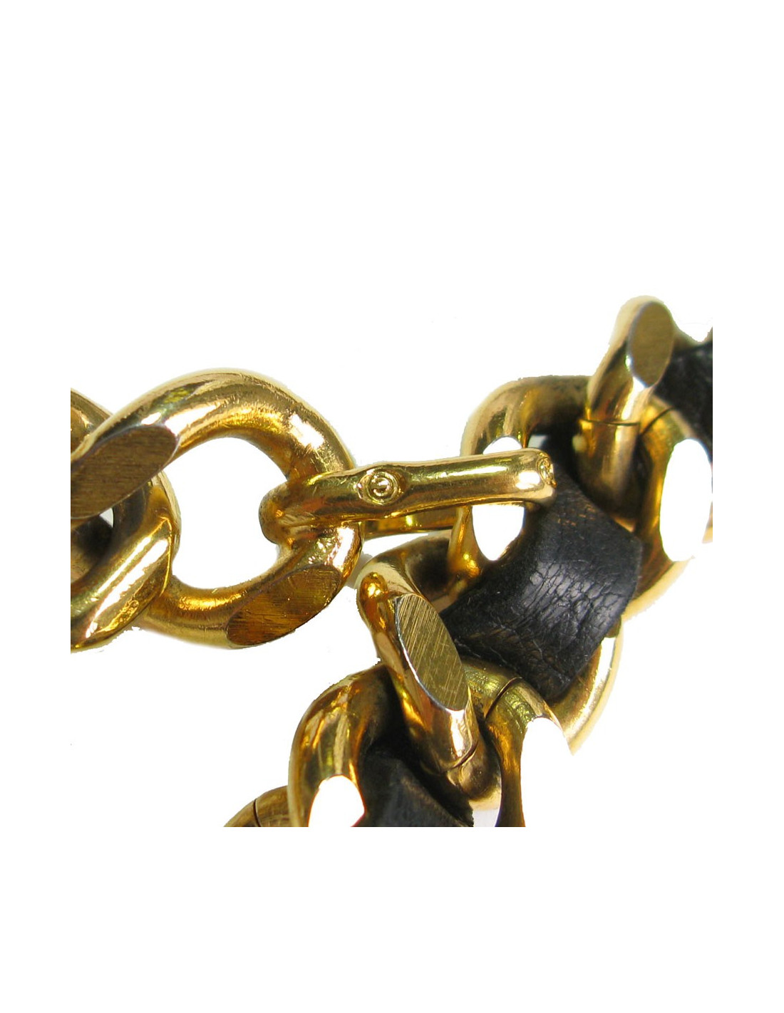 Ceinture CHANEL en chaine dorée et cuir noir vintage