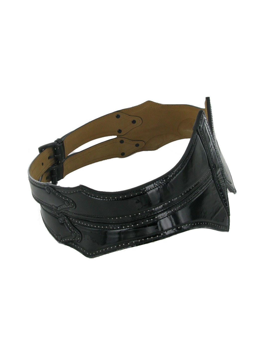 Cuir verni noir perforé. 2 boucles en métal canon de fusil.