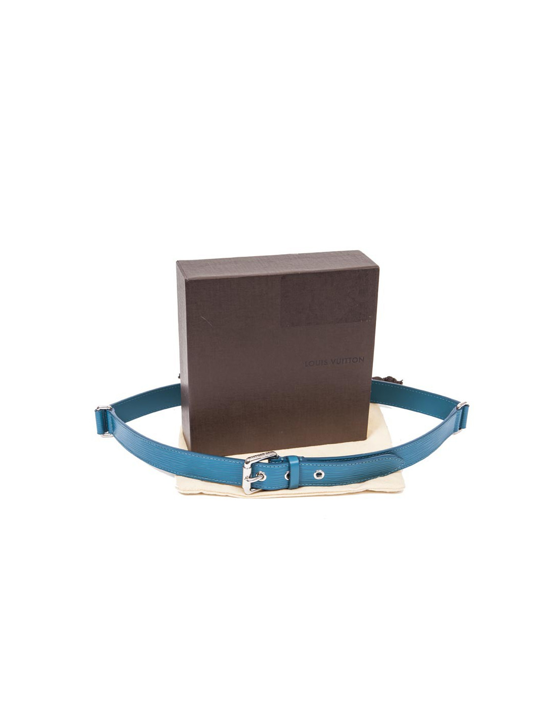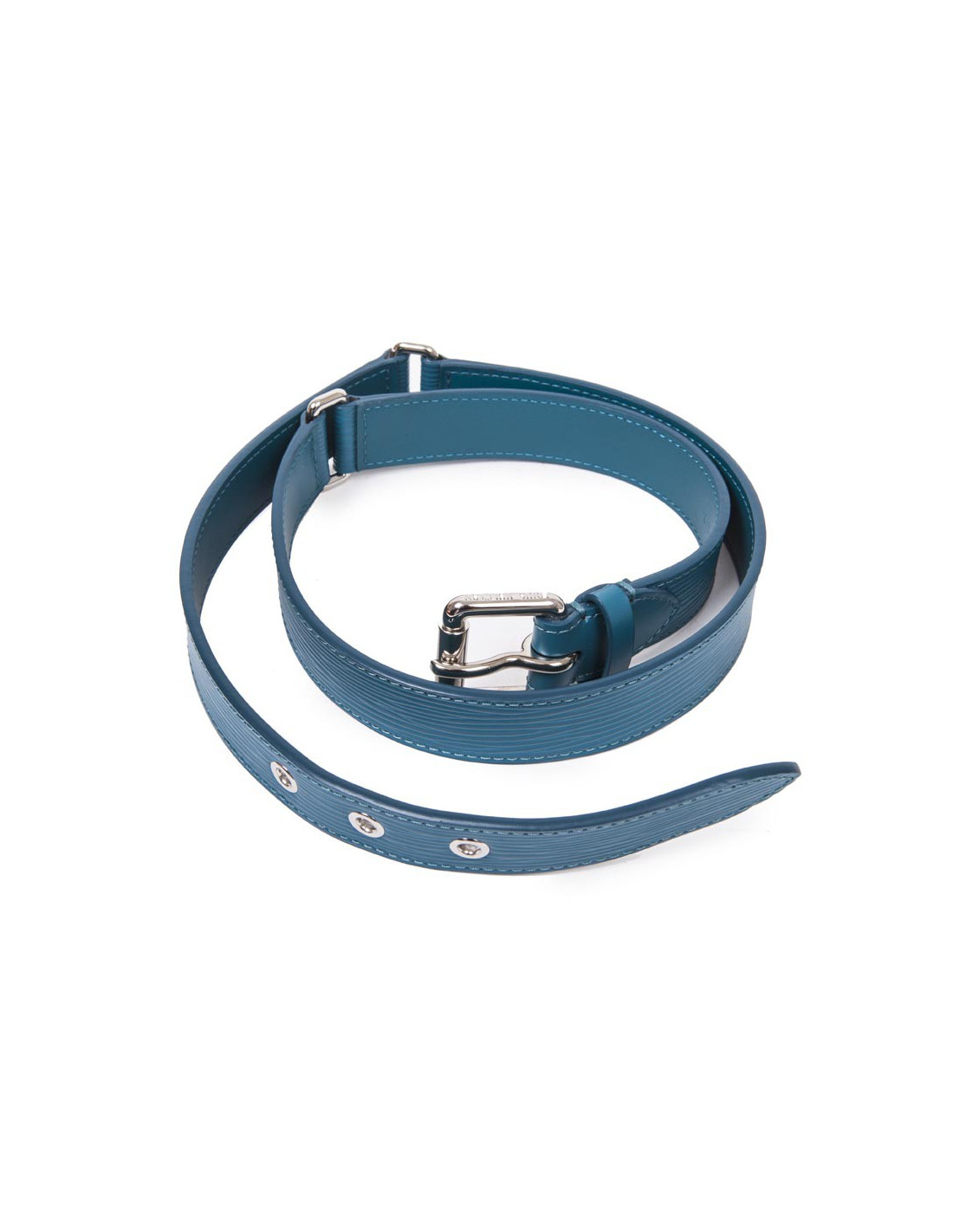 Ceinture "Trio", Louis Vuitton, taille 85, en cuir épi bleu cyan. Accastillage argent palladié.