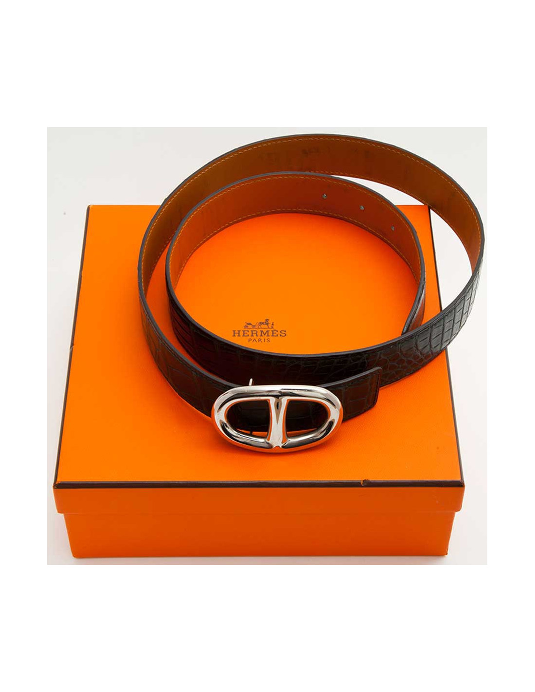 La ceinture Hermès sera livrée dans sa boîte orange d’origine.