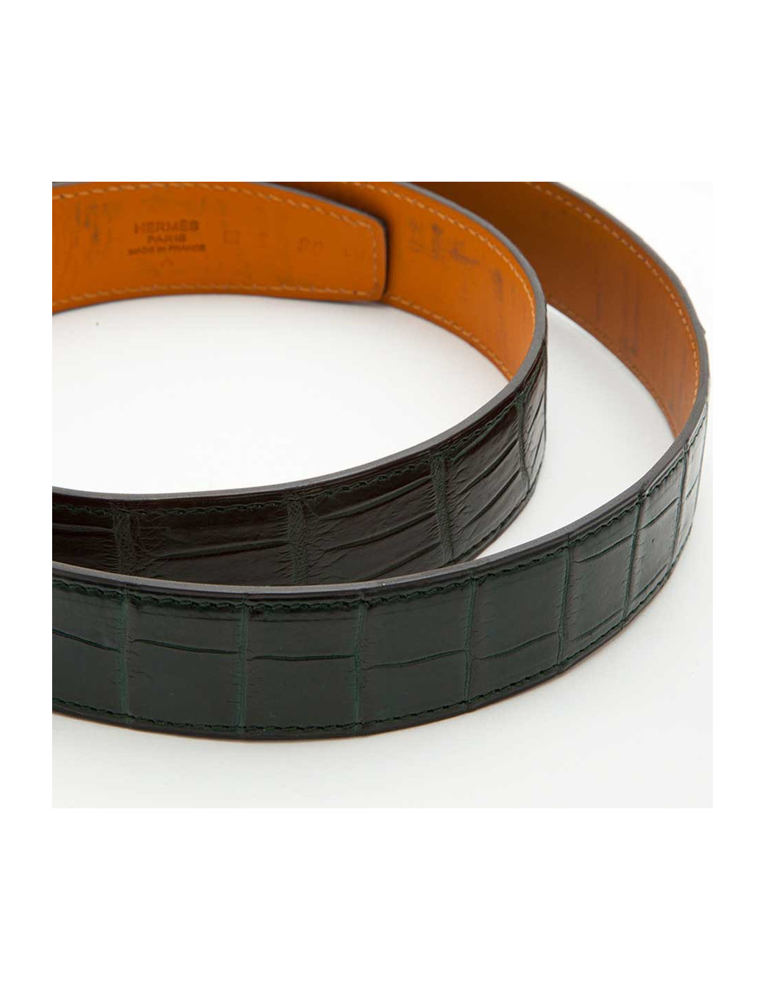 Ceinture HERMES Homme t 90 en crocodile porosus vert foncé
