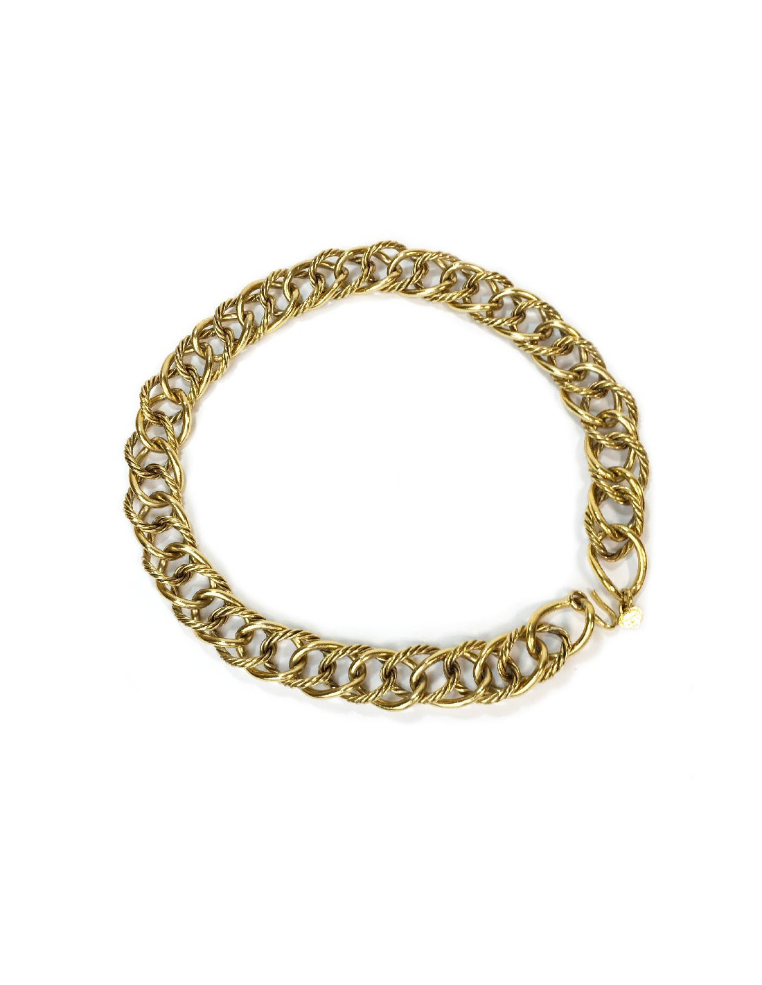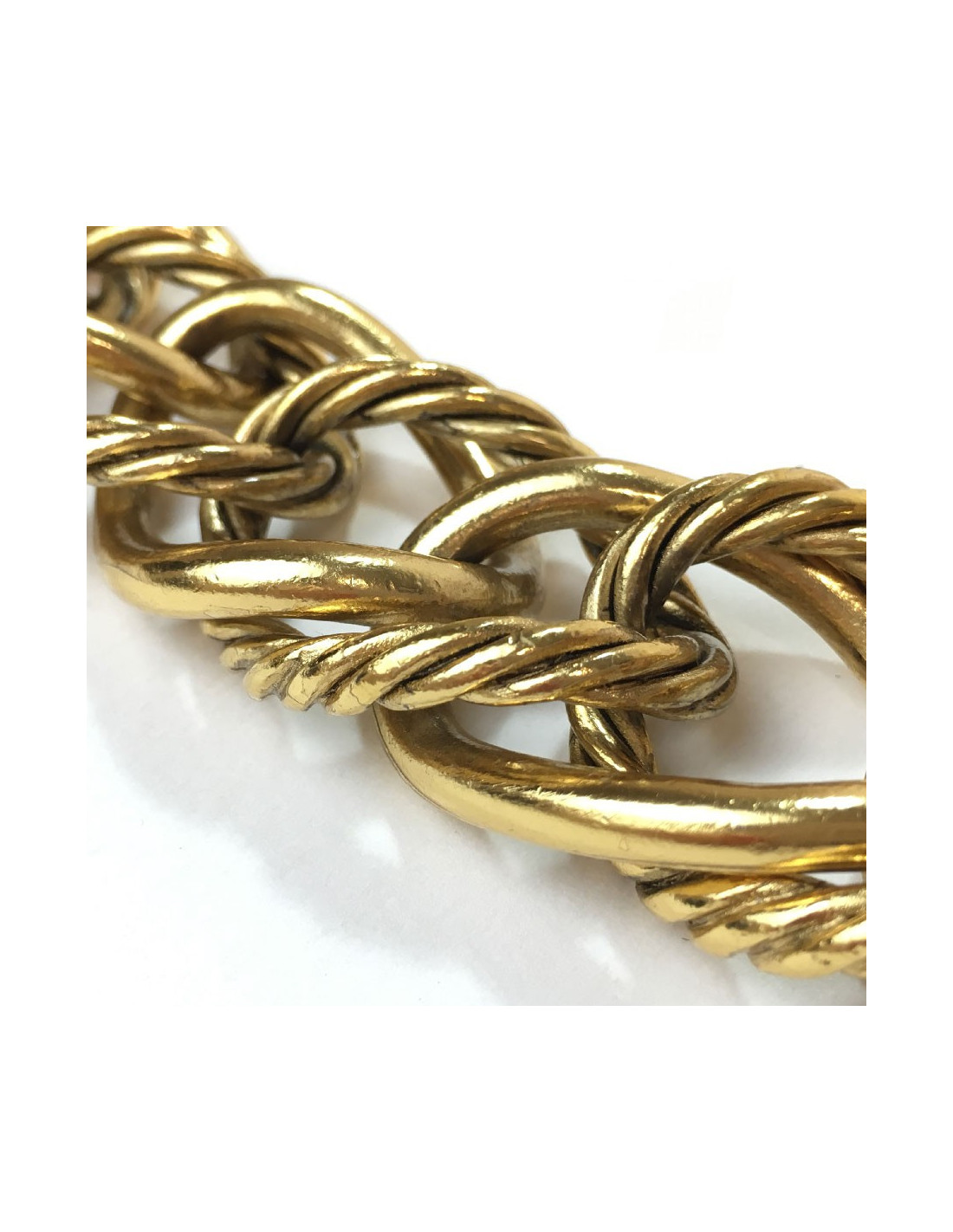 Ceinture YSL Yves Saint Laurent Rive Gauche vintage à anneaux lisses et torsadés en métal doré. Taille 70. Fermoir crochet