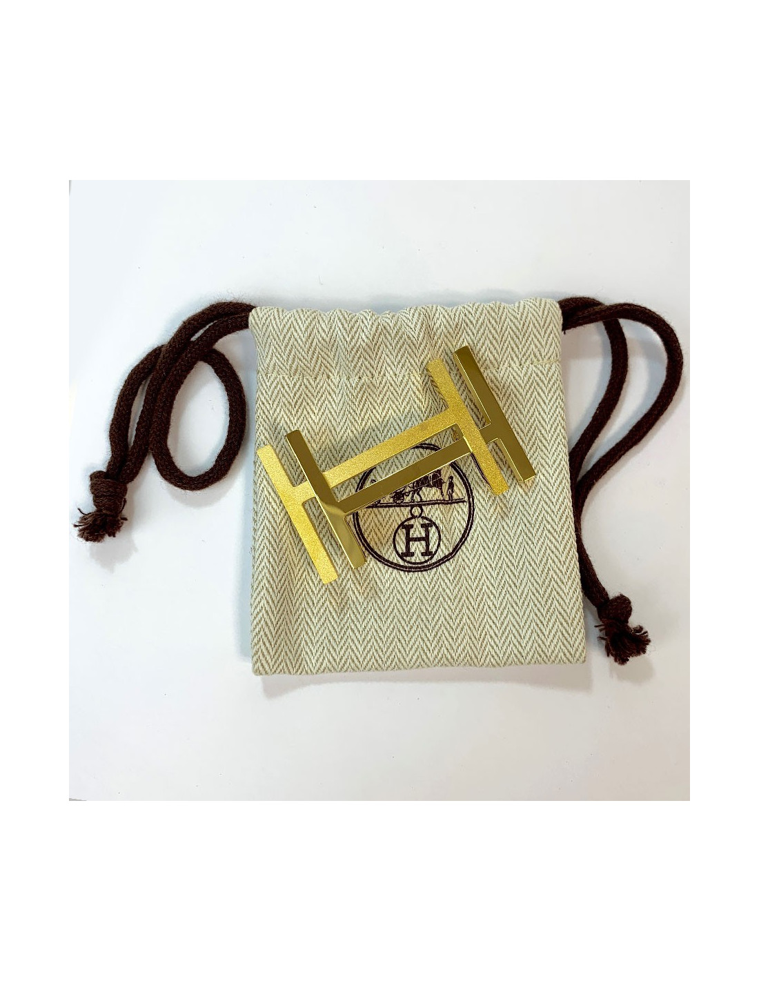 Boucle de ceinture HERMES H en carré en métal doré brillant et mat