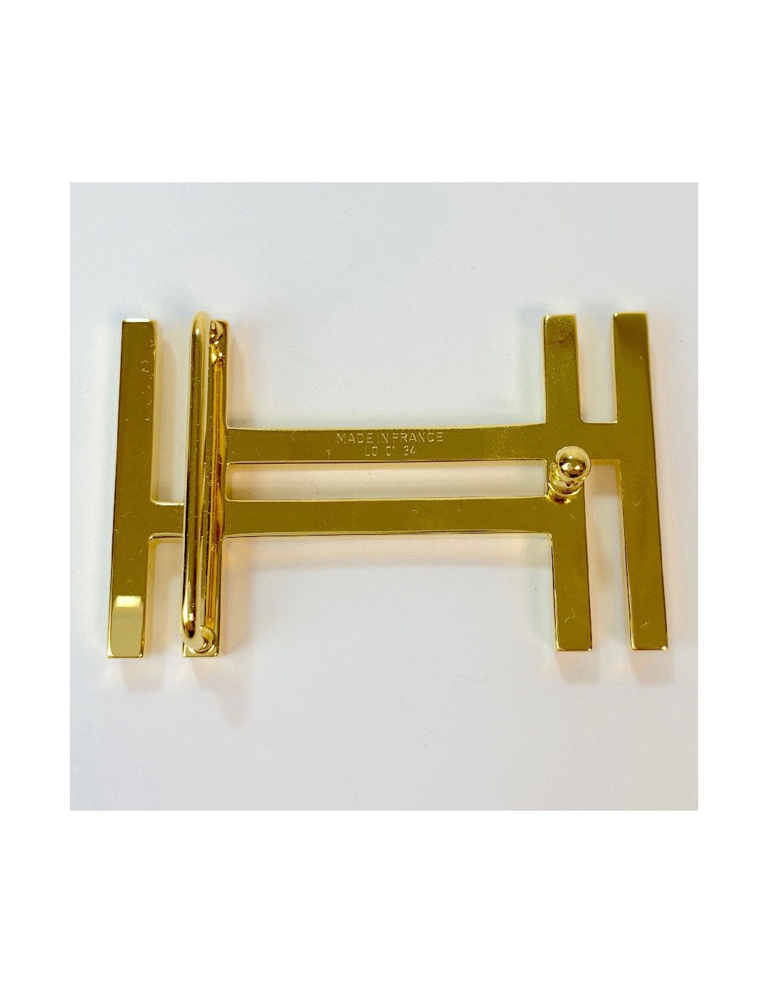 Cette boucle HERMES H en carré est esthétique grâce à sa finesse et sa dorure mat et brillante. Elle embellira les plus beaux cuirs de vos ceintures. Elle est de fabrication française.