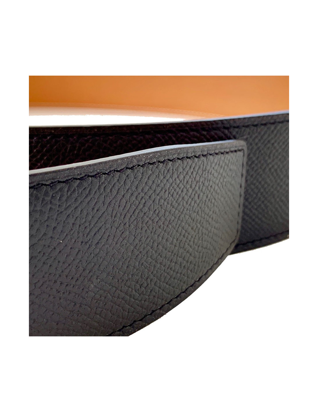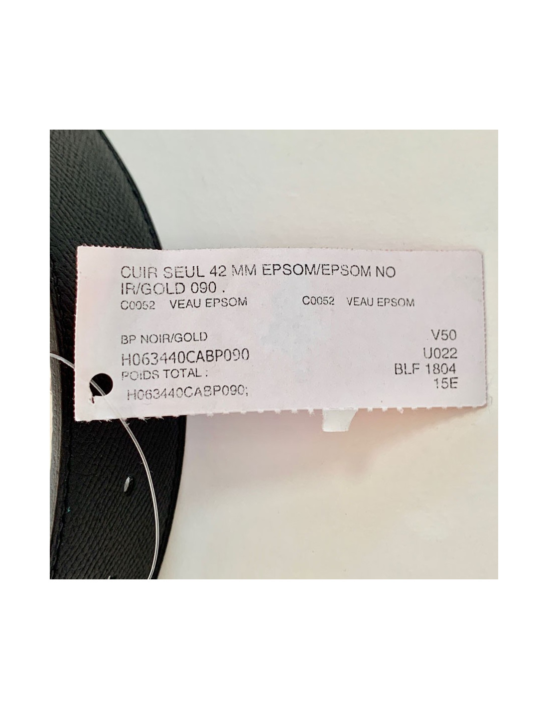 Cuir de ceinture HERMES 42mm en veau epsom noir et gold