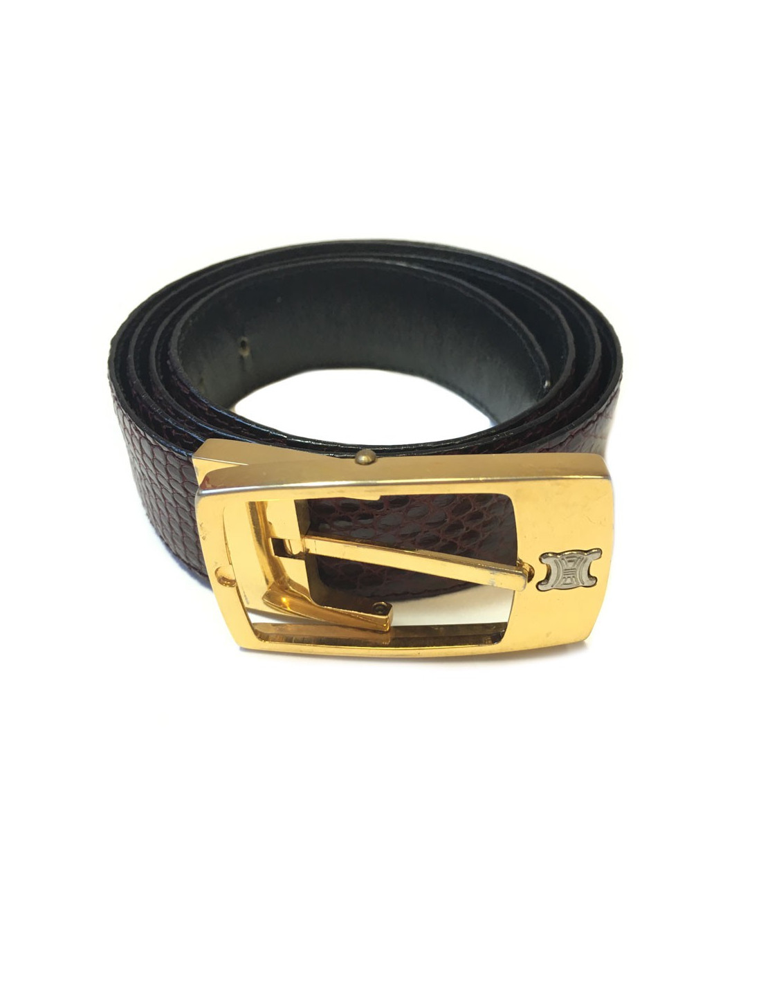 Ceinture CELINE en lézard bordeaux vintage. Boucle en métal doré. En très bon état général.