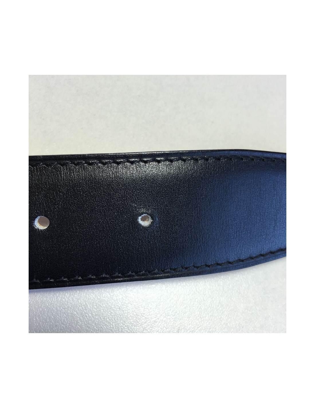 Dimensions: largeur: 3,4 cm - longueur: au 1er trou: 82,5 cm - au milieu: 85 cm - dernier trou: 88 cm