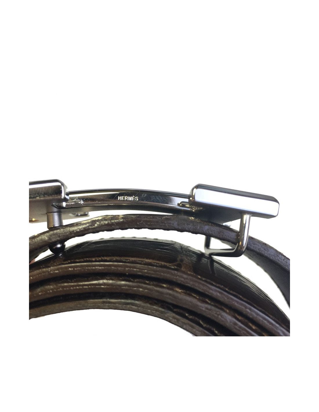Ceinture HERMES Homme T95 en crocodile porosus marron