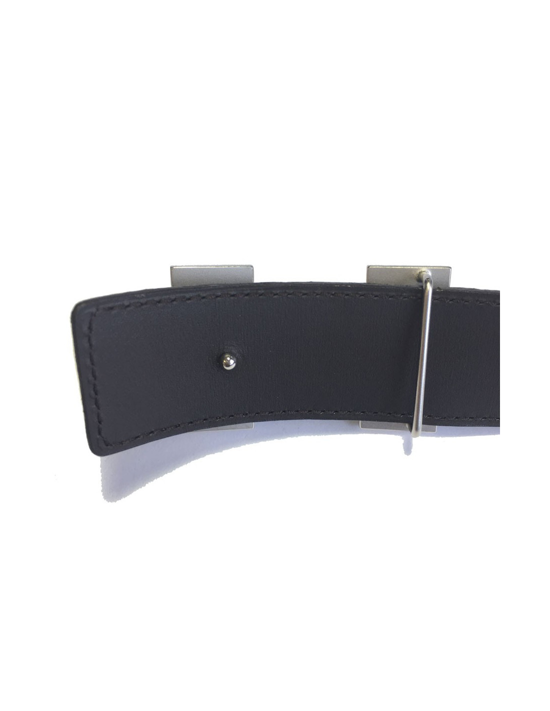 Dimensions : longueur totale : 107 cm - de la boucle au trou central : 92,5 cm - largeur : 3,2 cm. Hauteur : 6x3,7 cm. Ceinture à trois trous, possibilité de rajout.