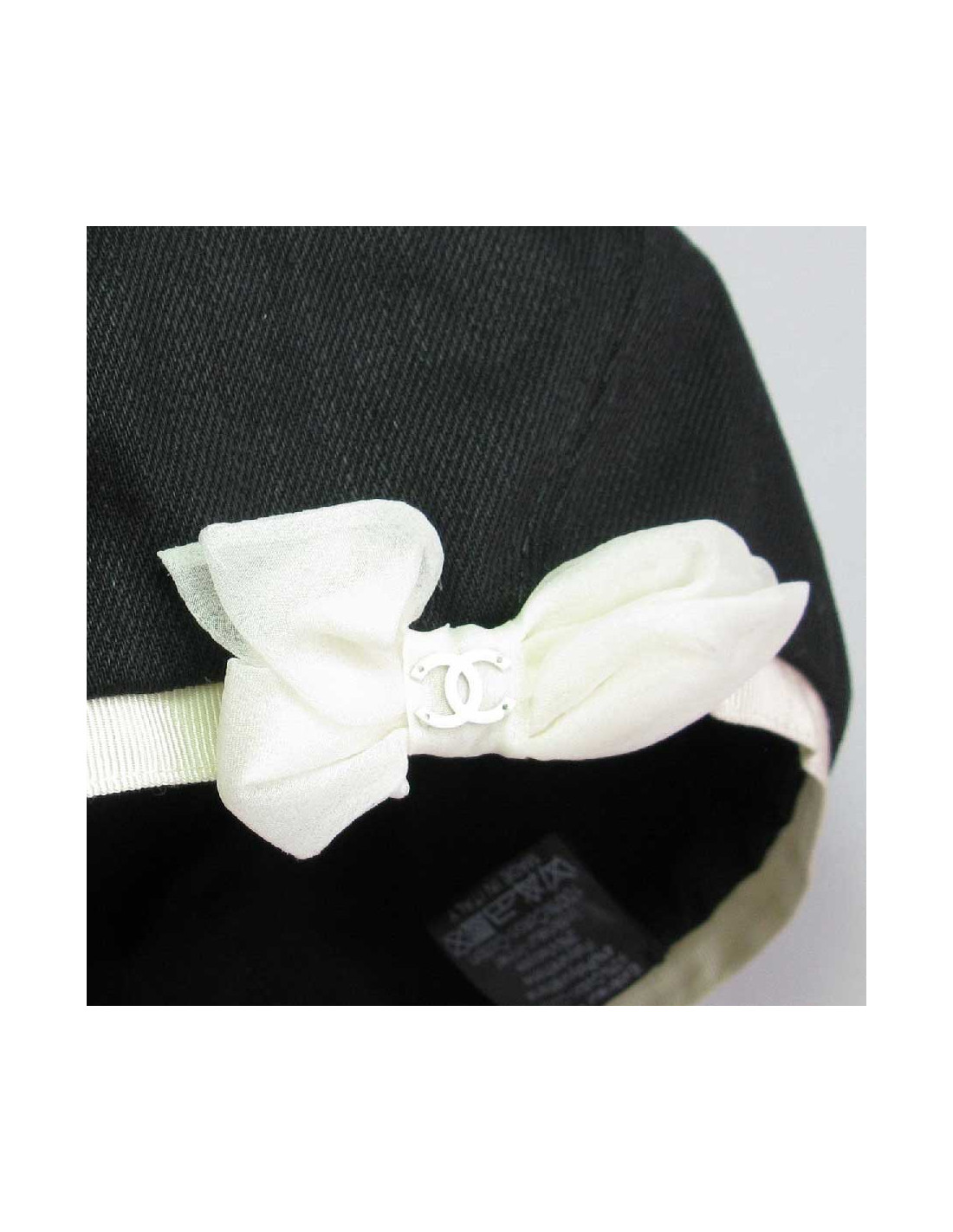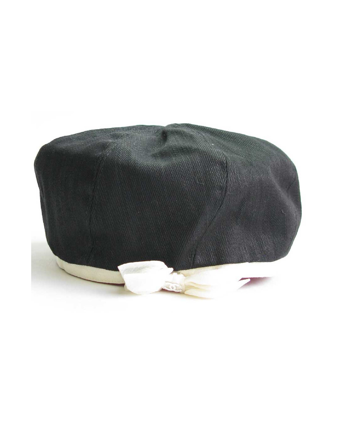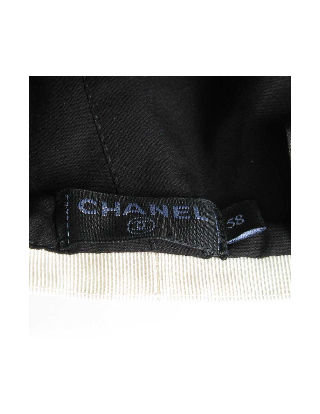 Béret CHANEL T 58 coton noir, liseré blanc et noeud écru