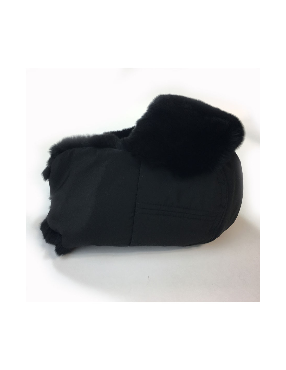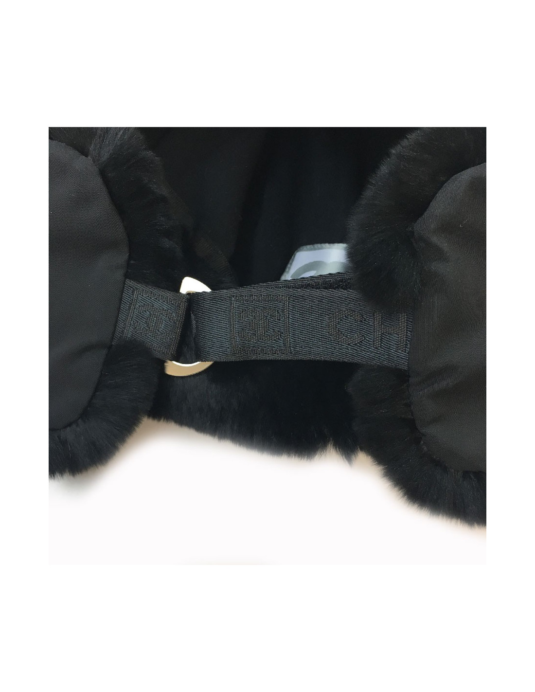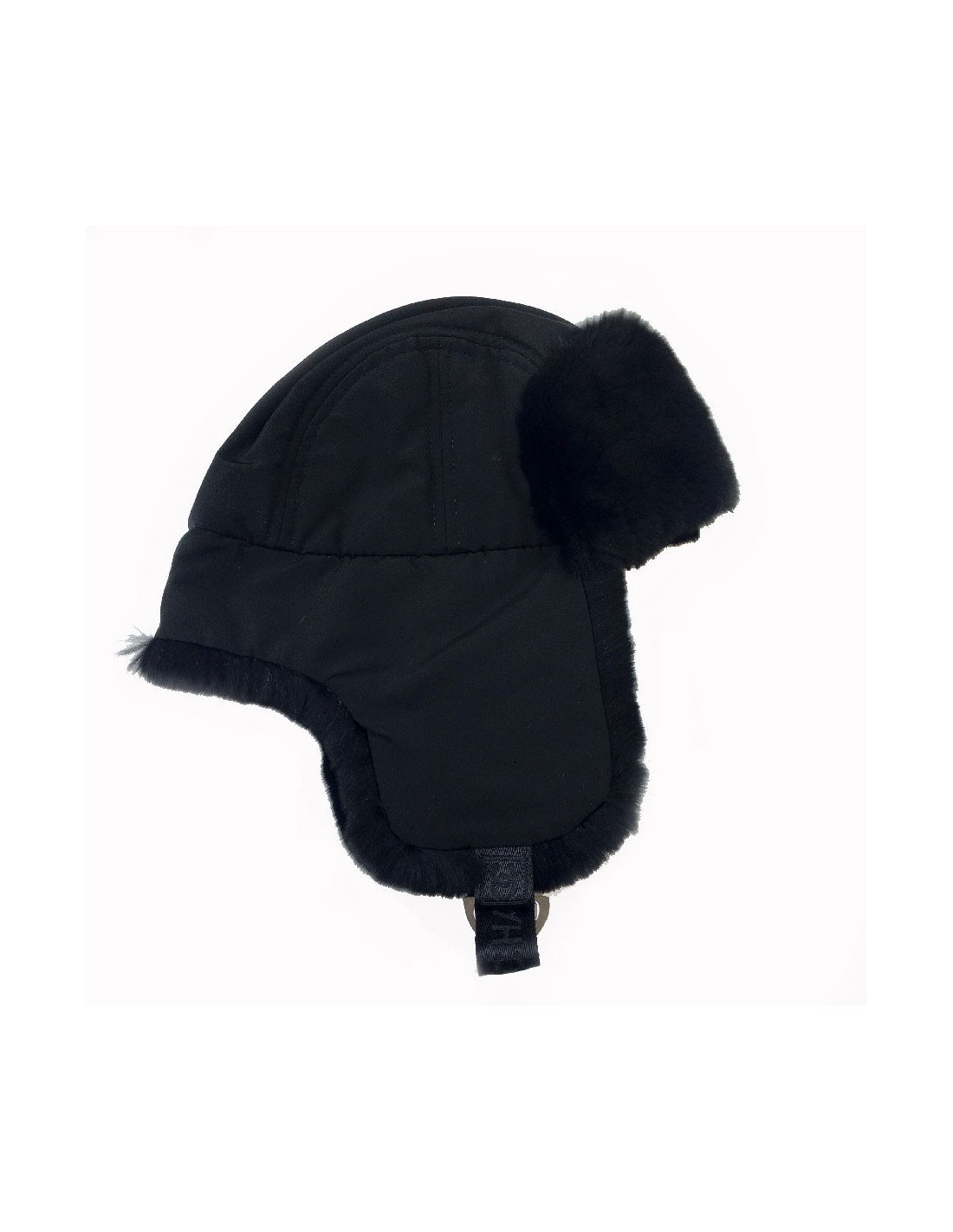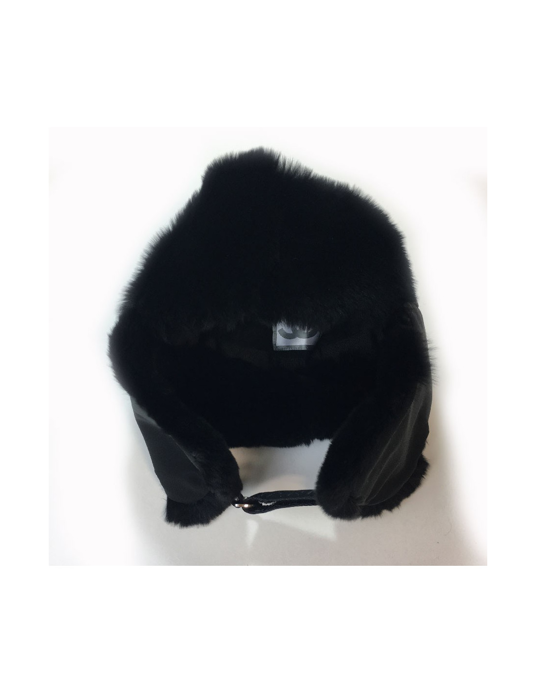 Pour être stylée cet hiver, très belle chapka Chanel dont le tour de tête est en orylag noir et le dessus en tissu style téflon.