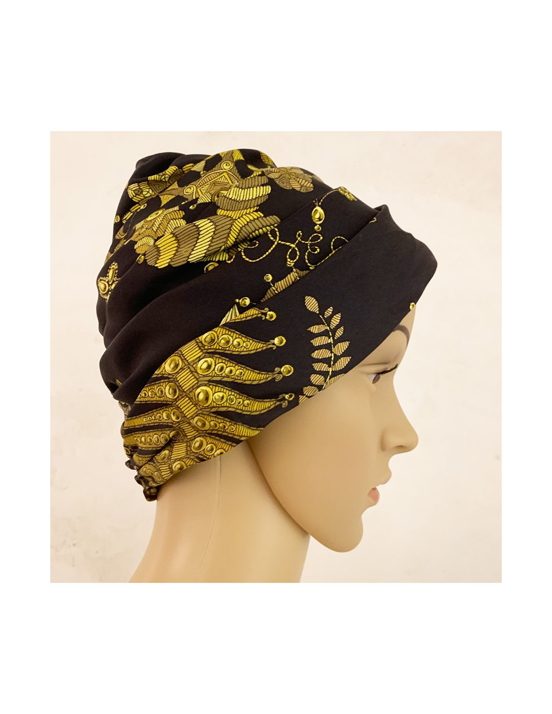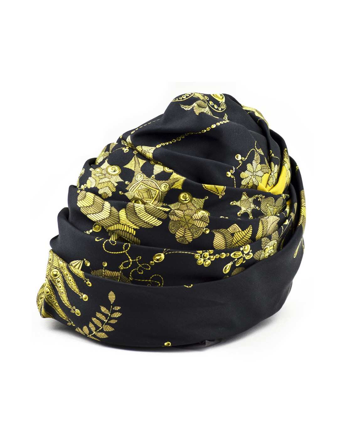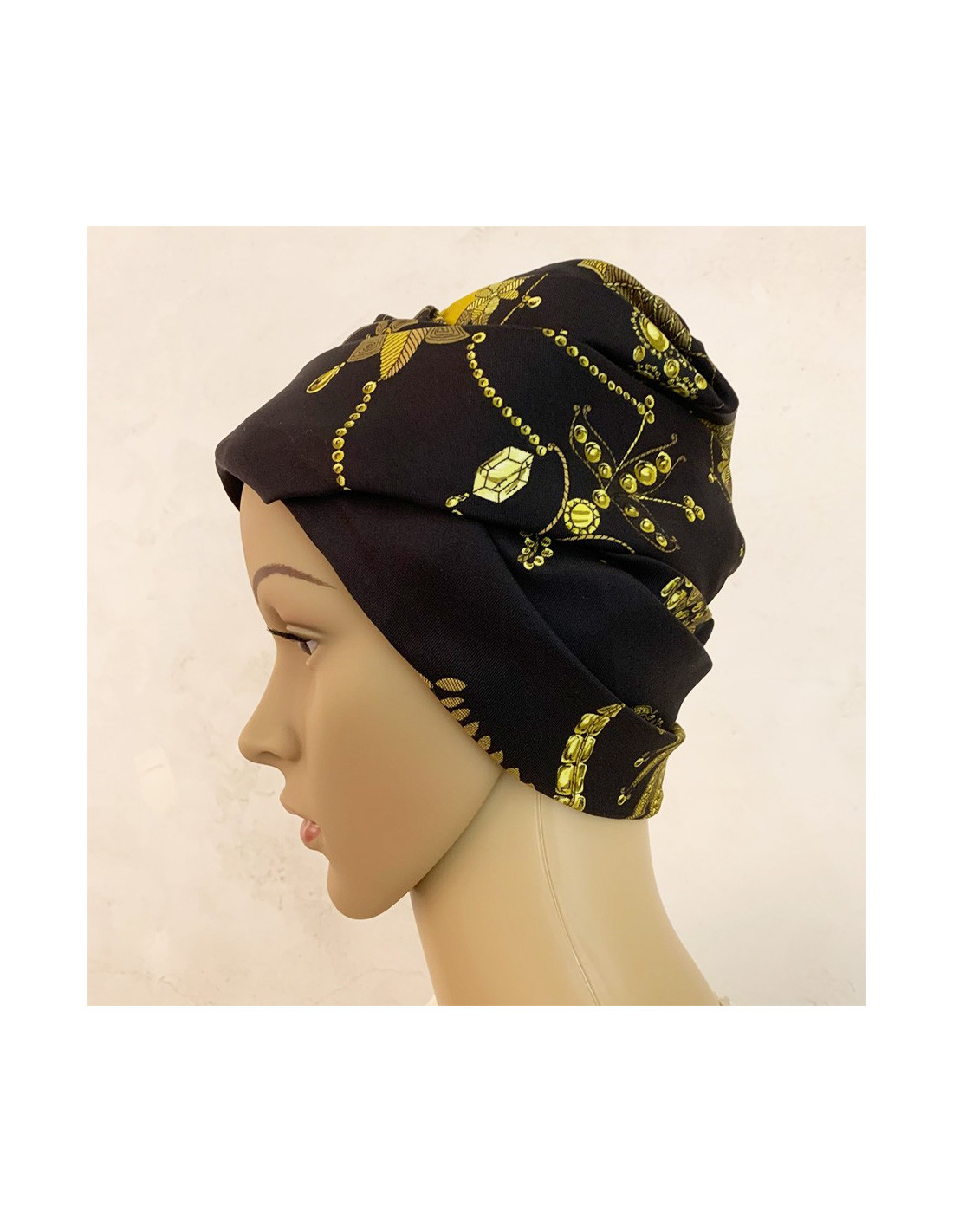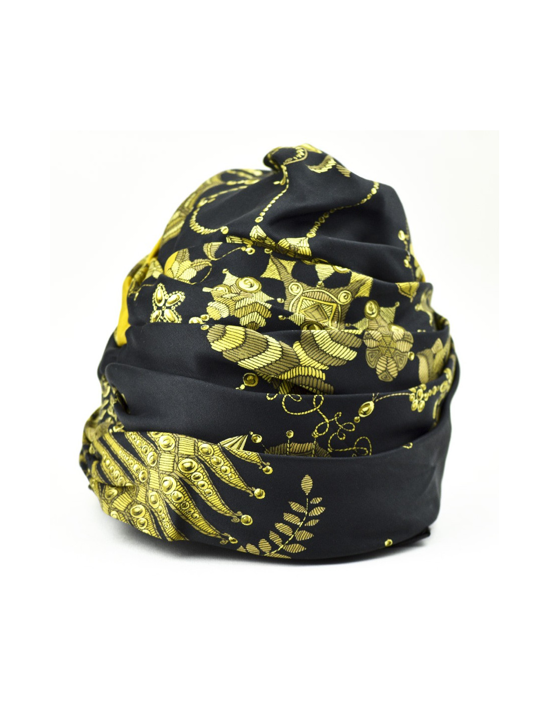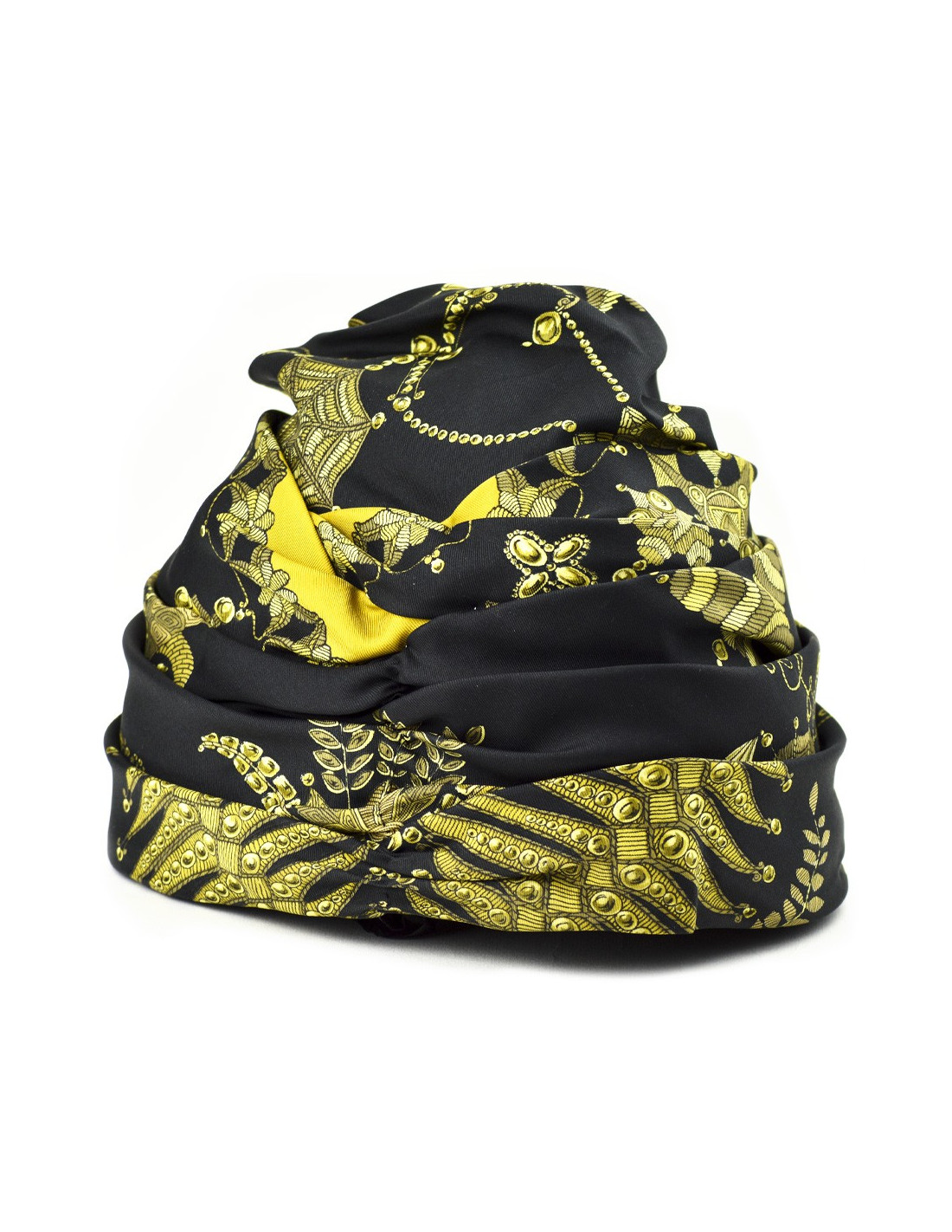 Chapeau HERMES soie noire et motifs dorés
