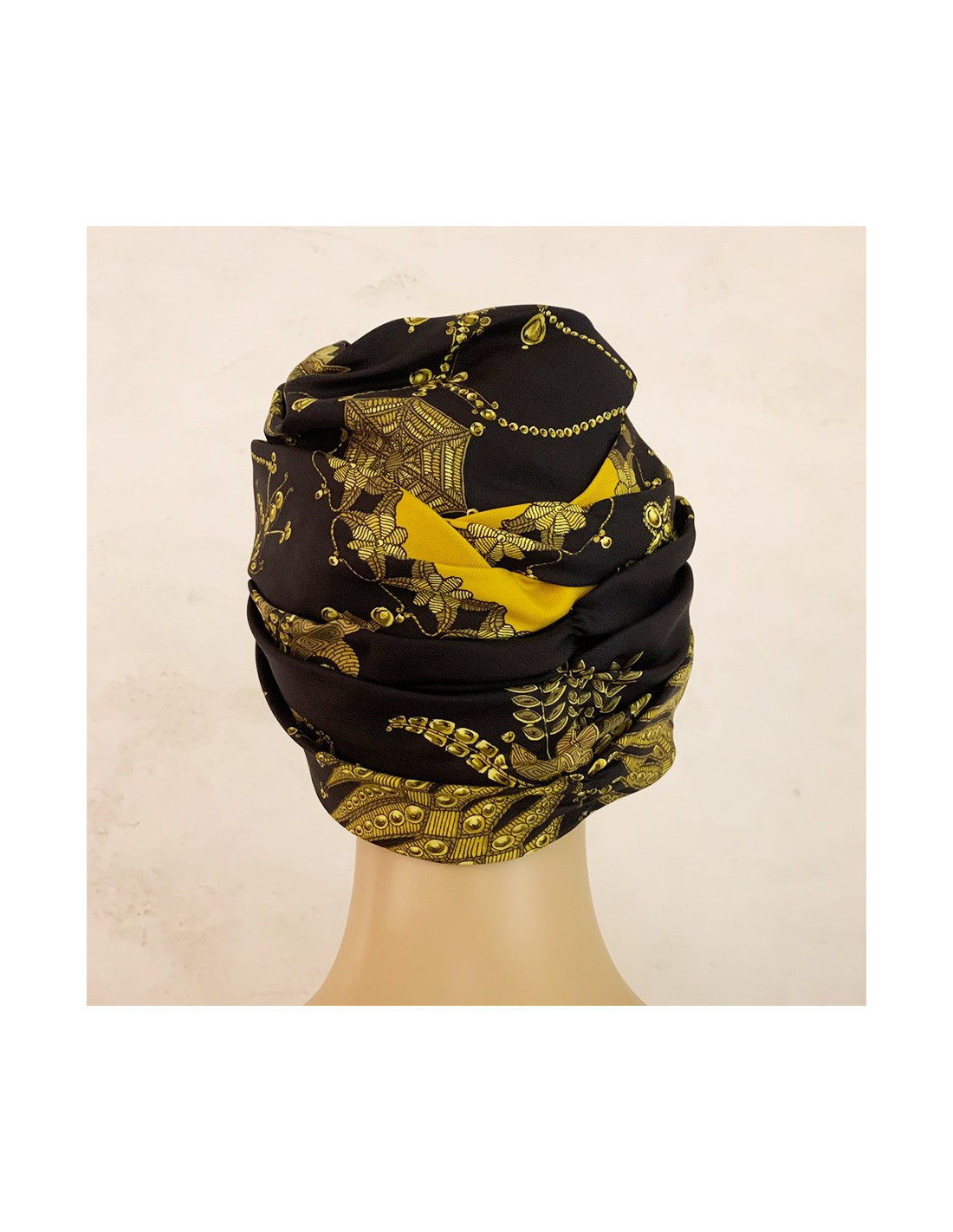 Chapeau HERMES soie noire et or Vintage