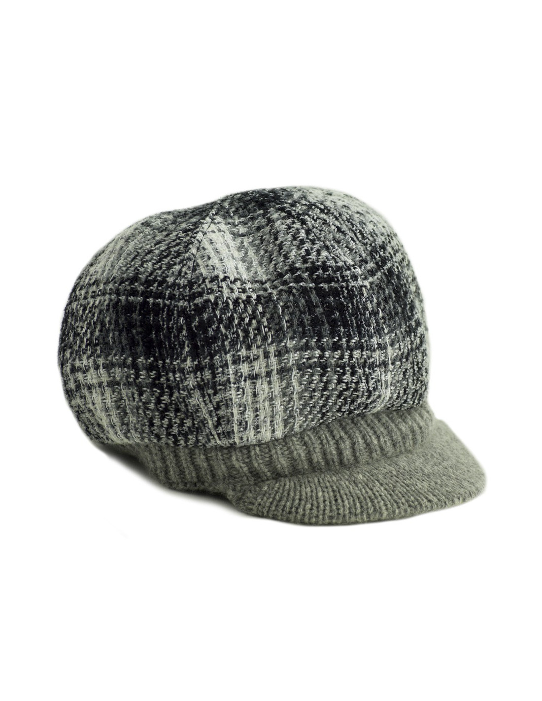 La casquette provient de la Maison CHANEL. Elle a une forme de casquette gavroche. Elle est en cachemire et laine blanche, noire et grise. Sur l’avant gauche, le logo CC en métal est présent, il apporte une touche fashion supplémentaire.