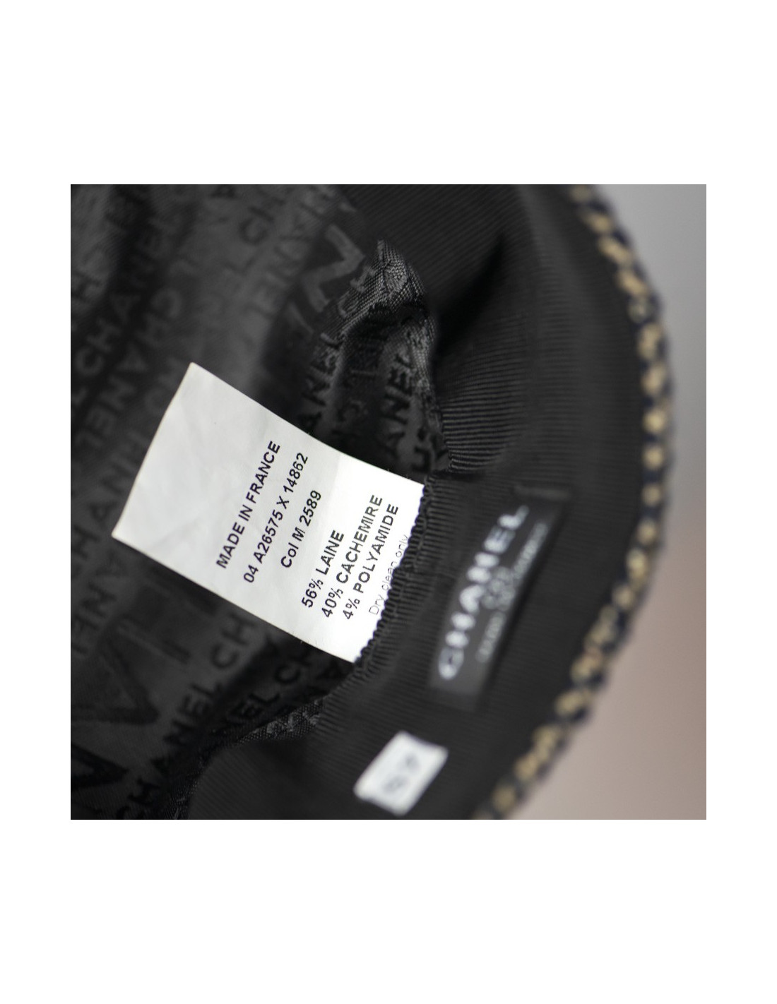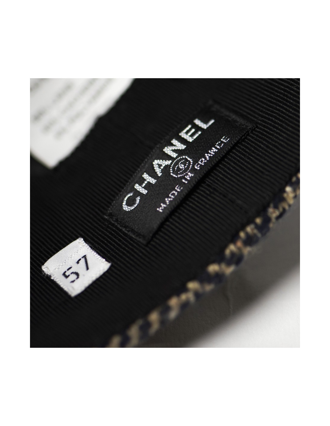Caractéristiques de la casquette Chanel T 57 chevron beige et bleu