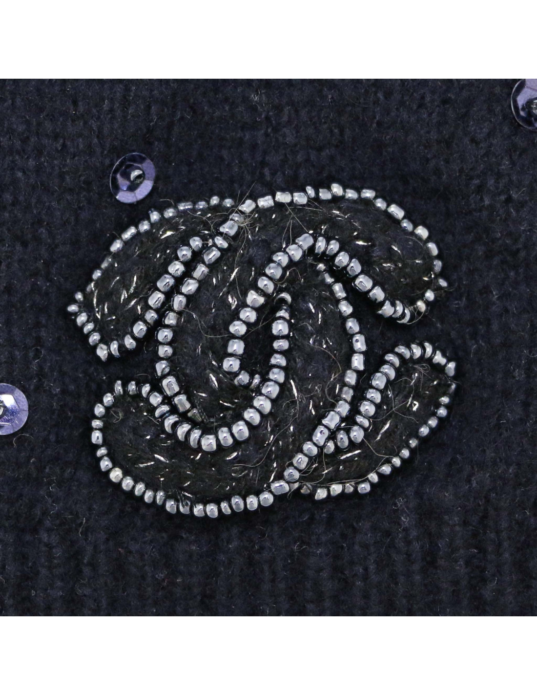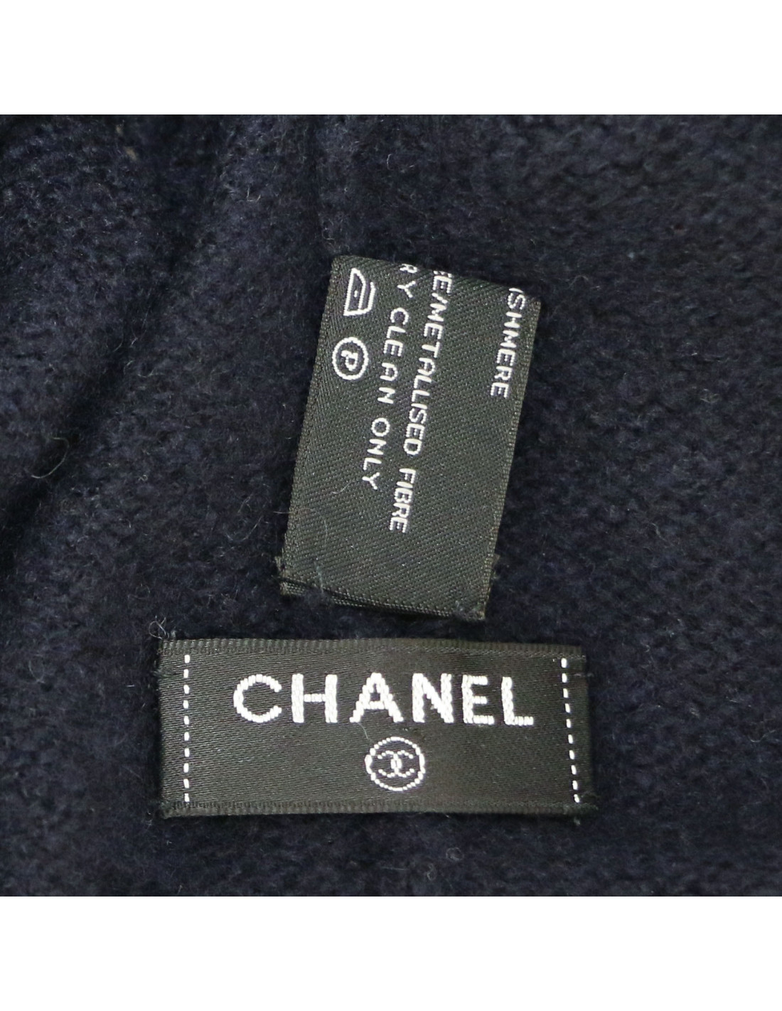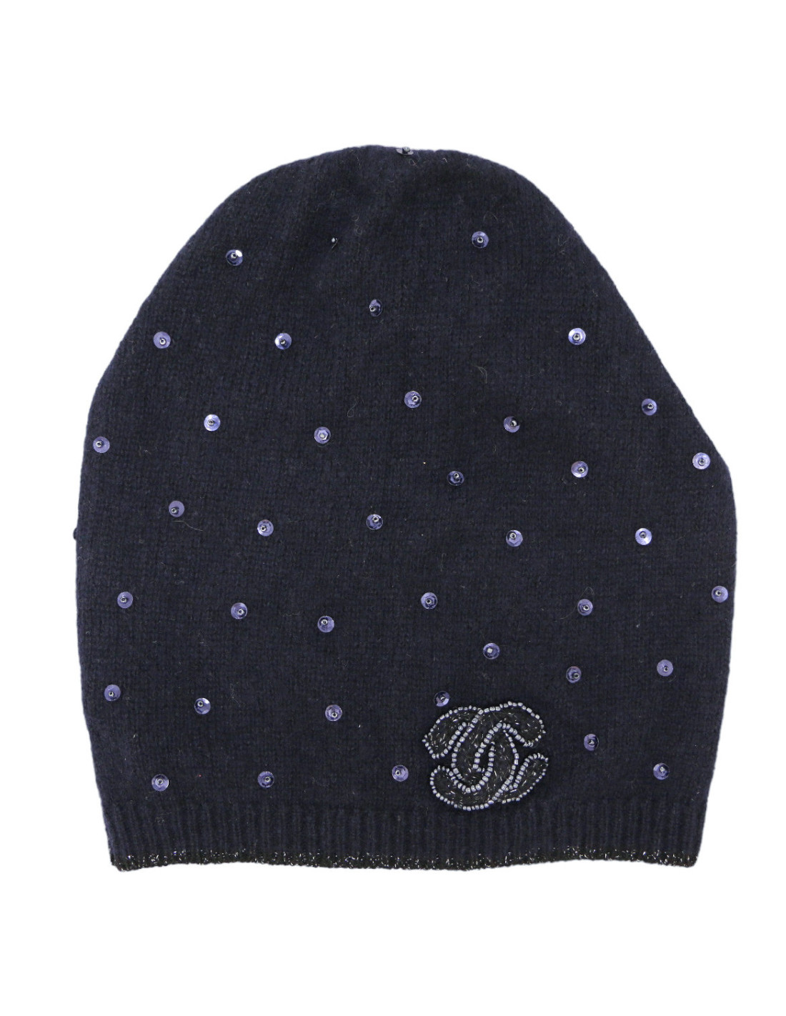 Bonnet CHANEL cachemire bleu nuit sequins broderies CC