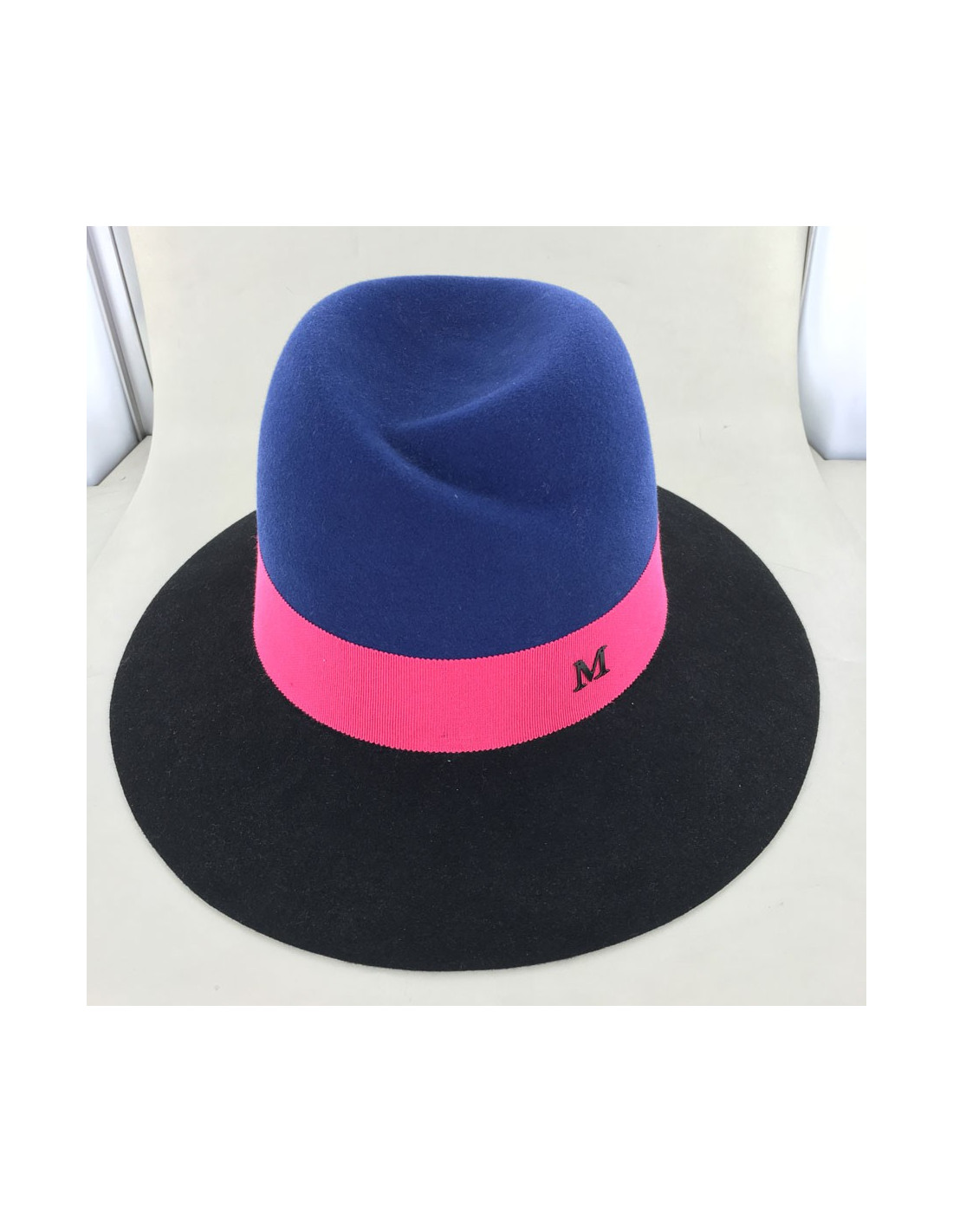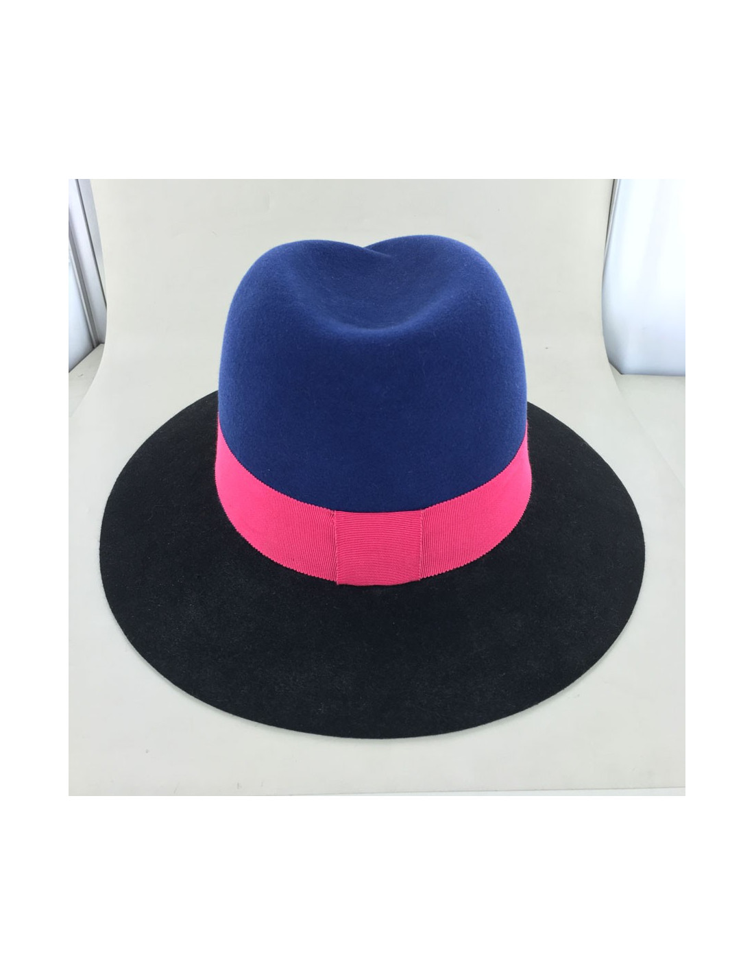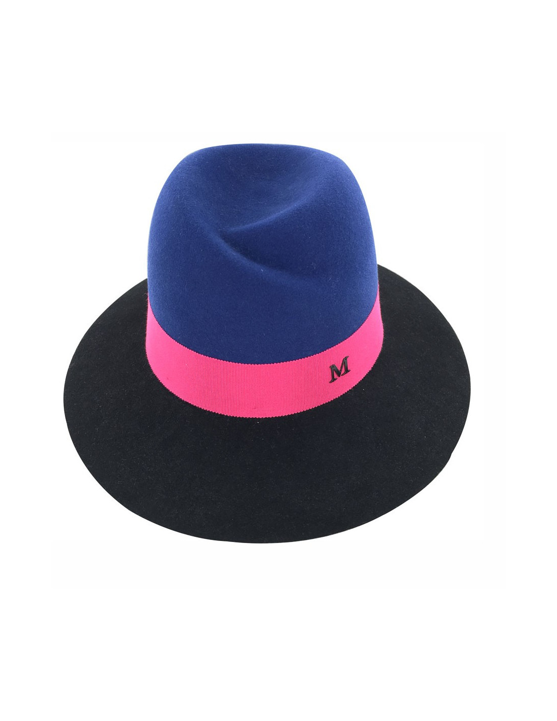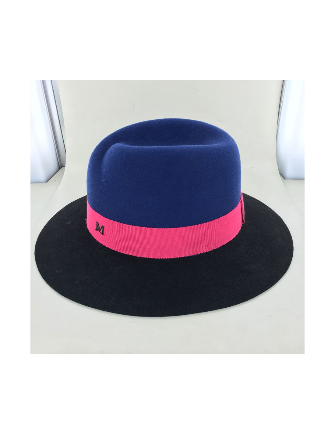 Feutre Virginie MAISON MICHEL bicolore bleu et noir et gros grain bordeaux