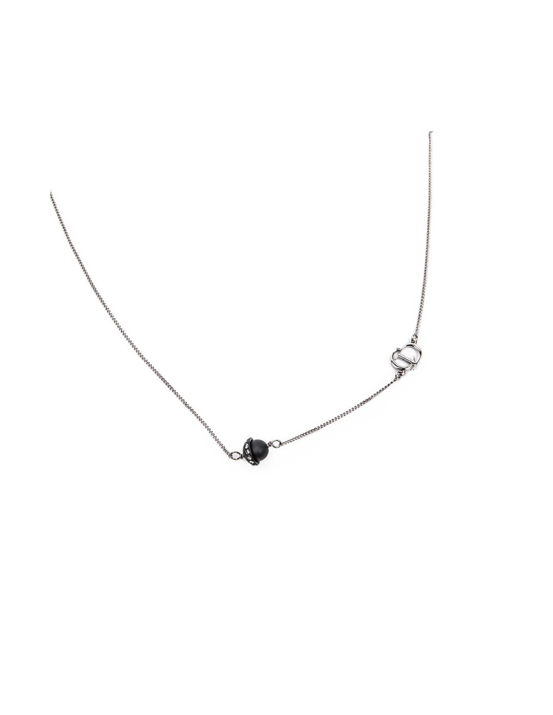 Collier court CD Dior en métal argent palladié