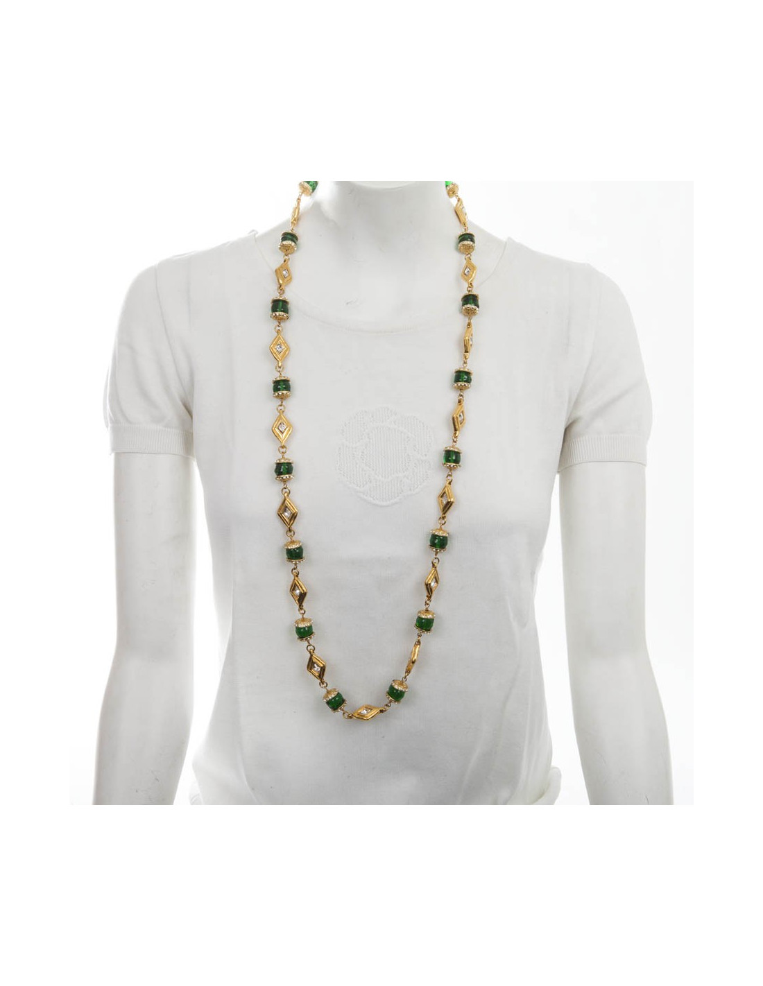 Sautoir Couture CHANEL en pâte de verre émeraude