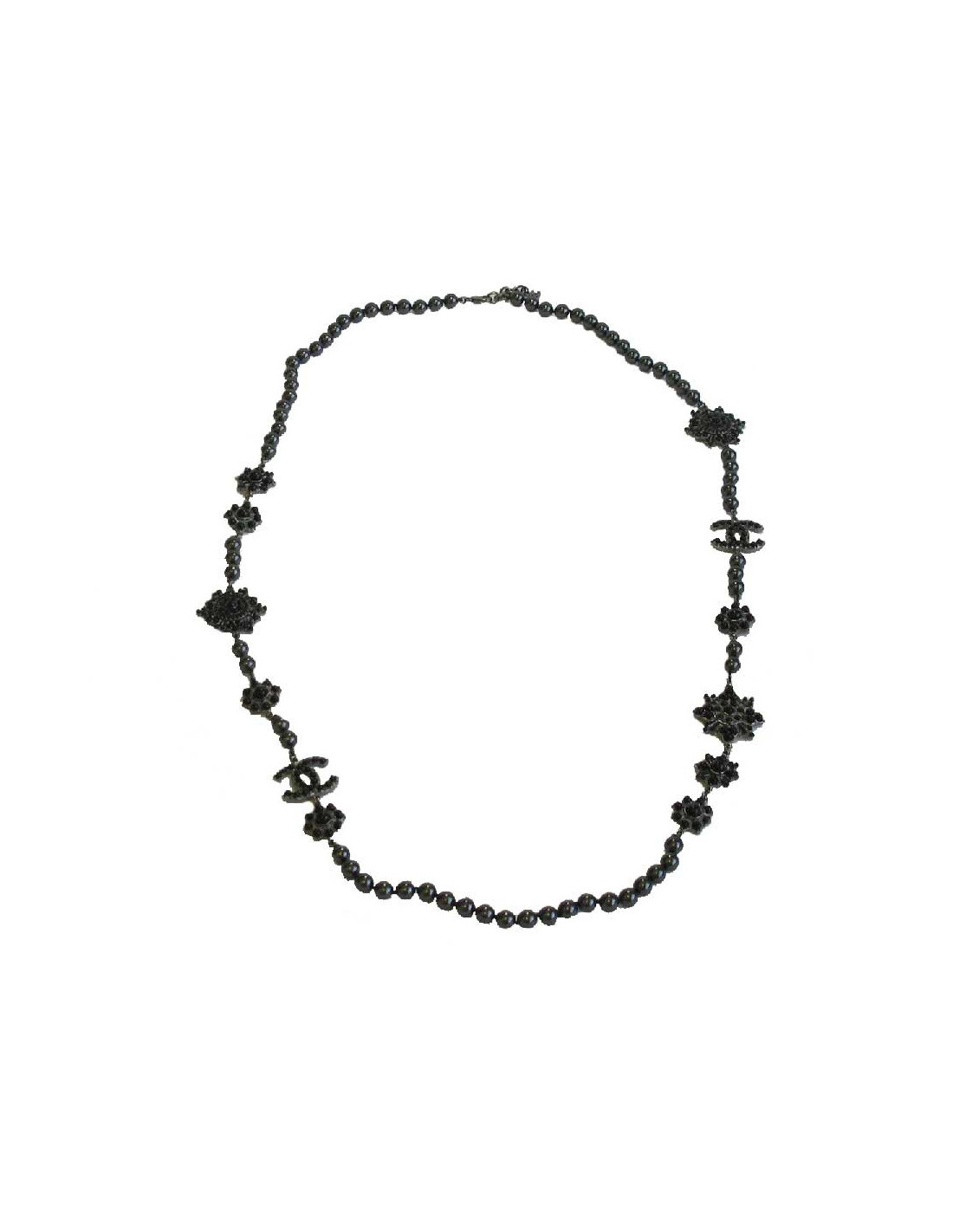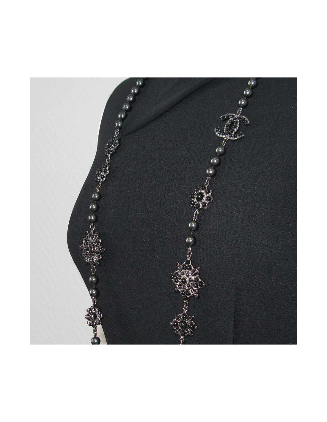 Bijou facile à porter en toutes occasions, sur différents vêtements. Les perles sont couleur canon de fusil et les estampés sont sertis de perles noires; en très bon état.