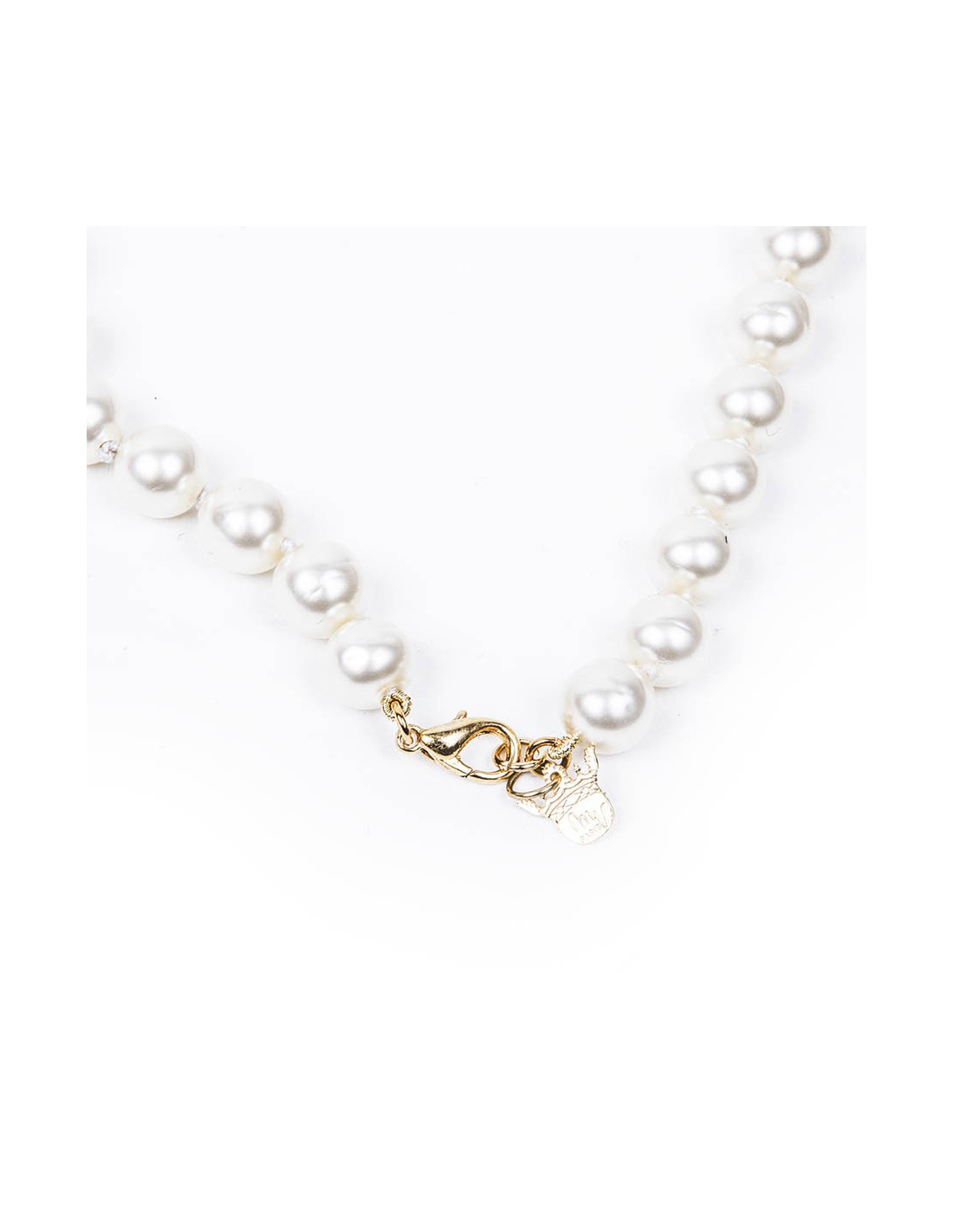 Collier Marguerite de Valois perles nacrées en pâte de verre, perles rondes et baroques. Ce collier se ferme à l'aide d'un fermoir bélière en métal doré à l'or fin