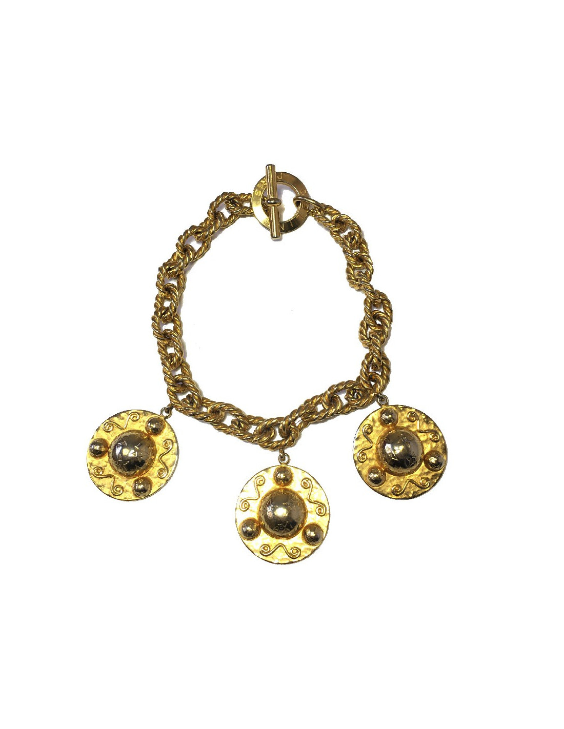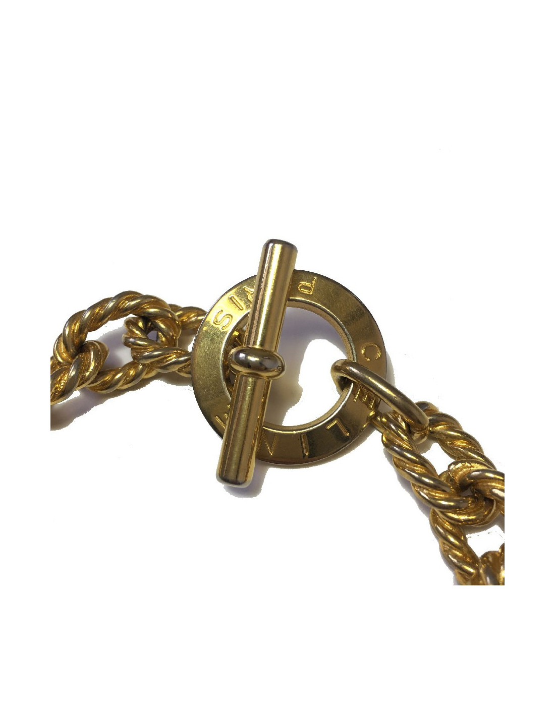 Collier Céline vintage. Chaîne à grosse maille torsadée et 3 pendants rond. Fermoir T.