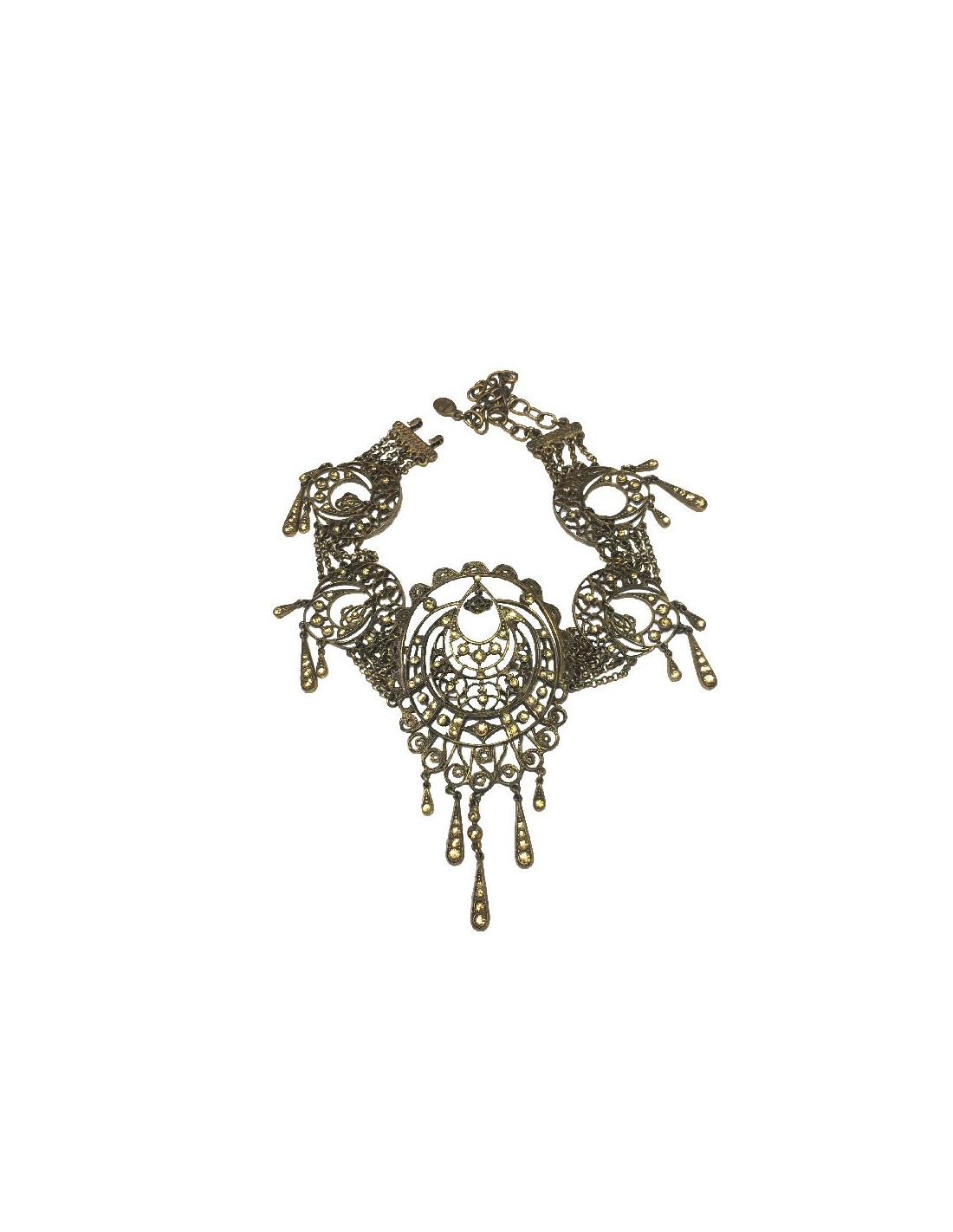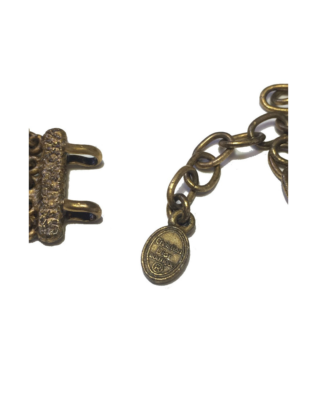 Collier CHRISTIAN DIOR vintage en métal filigrané cuivré, strass jaunes
