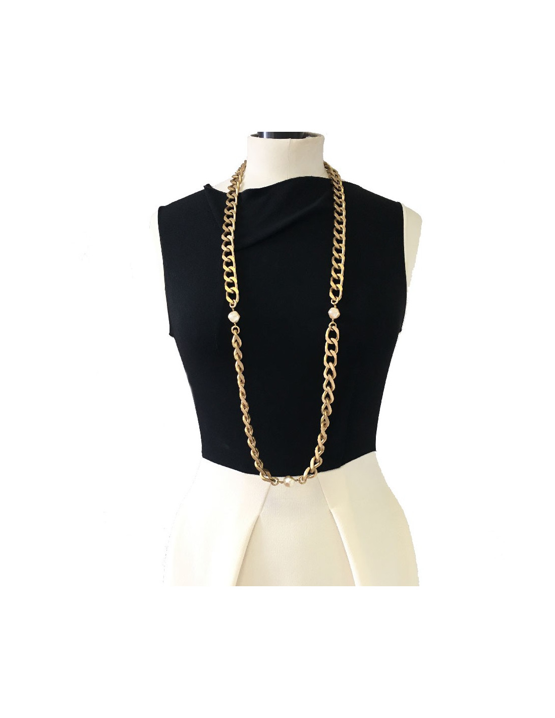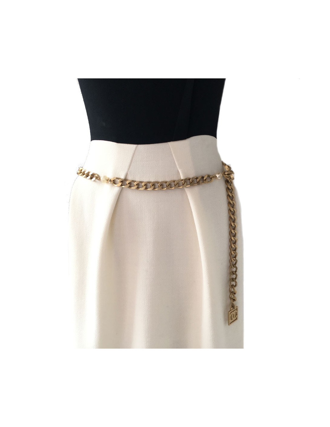 Ceinture sautoir CHANEL chaînes dorées et perles