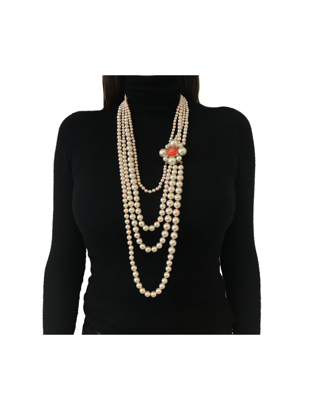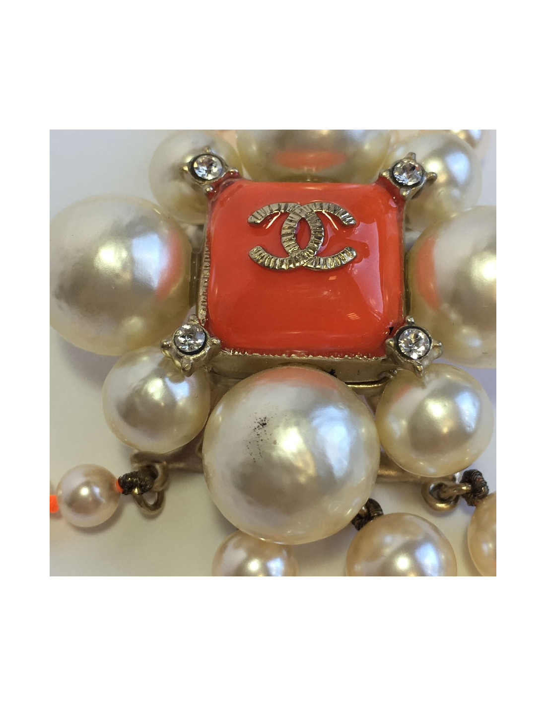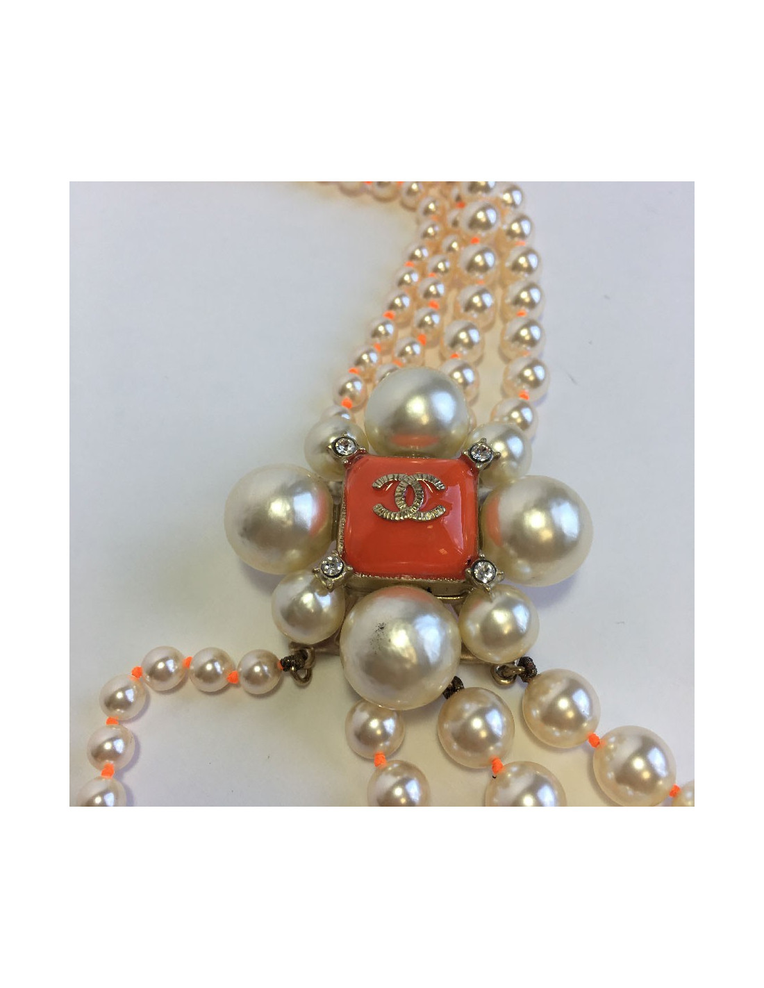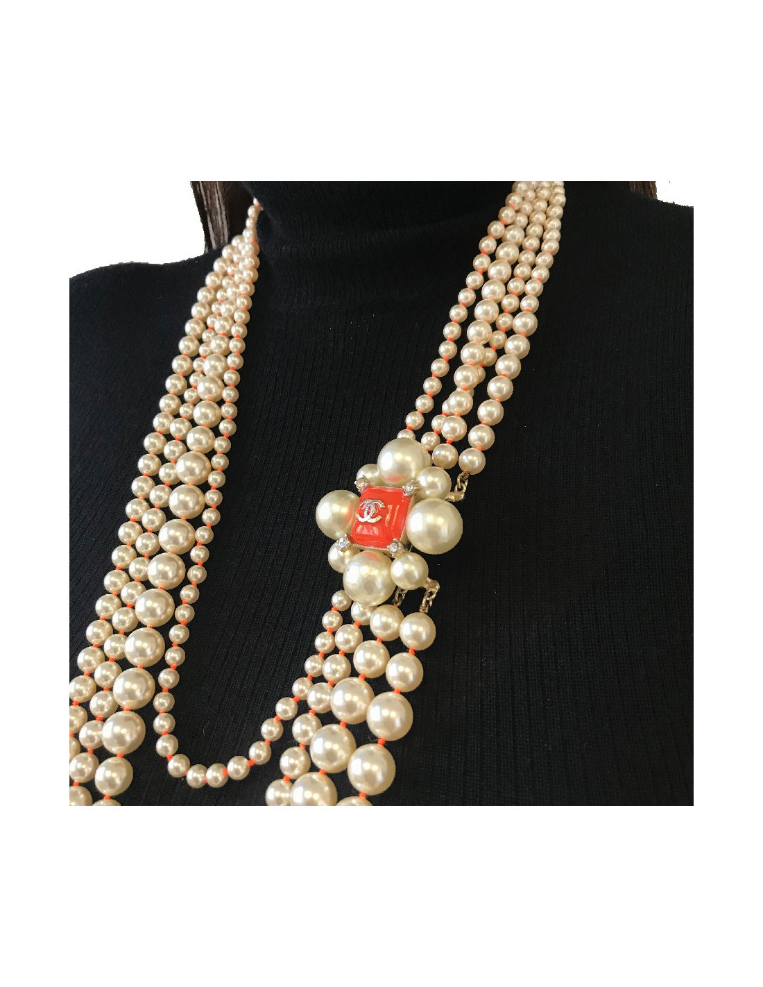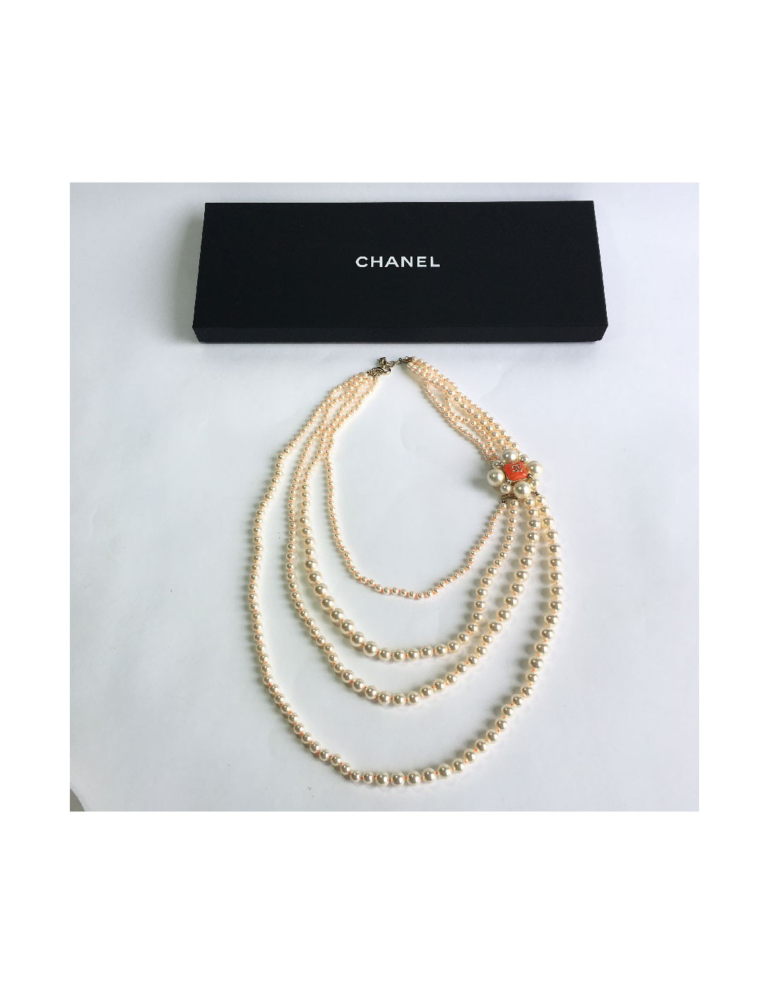 Sautoir CHANEL 4 rangs perles nacrées et orange