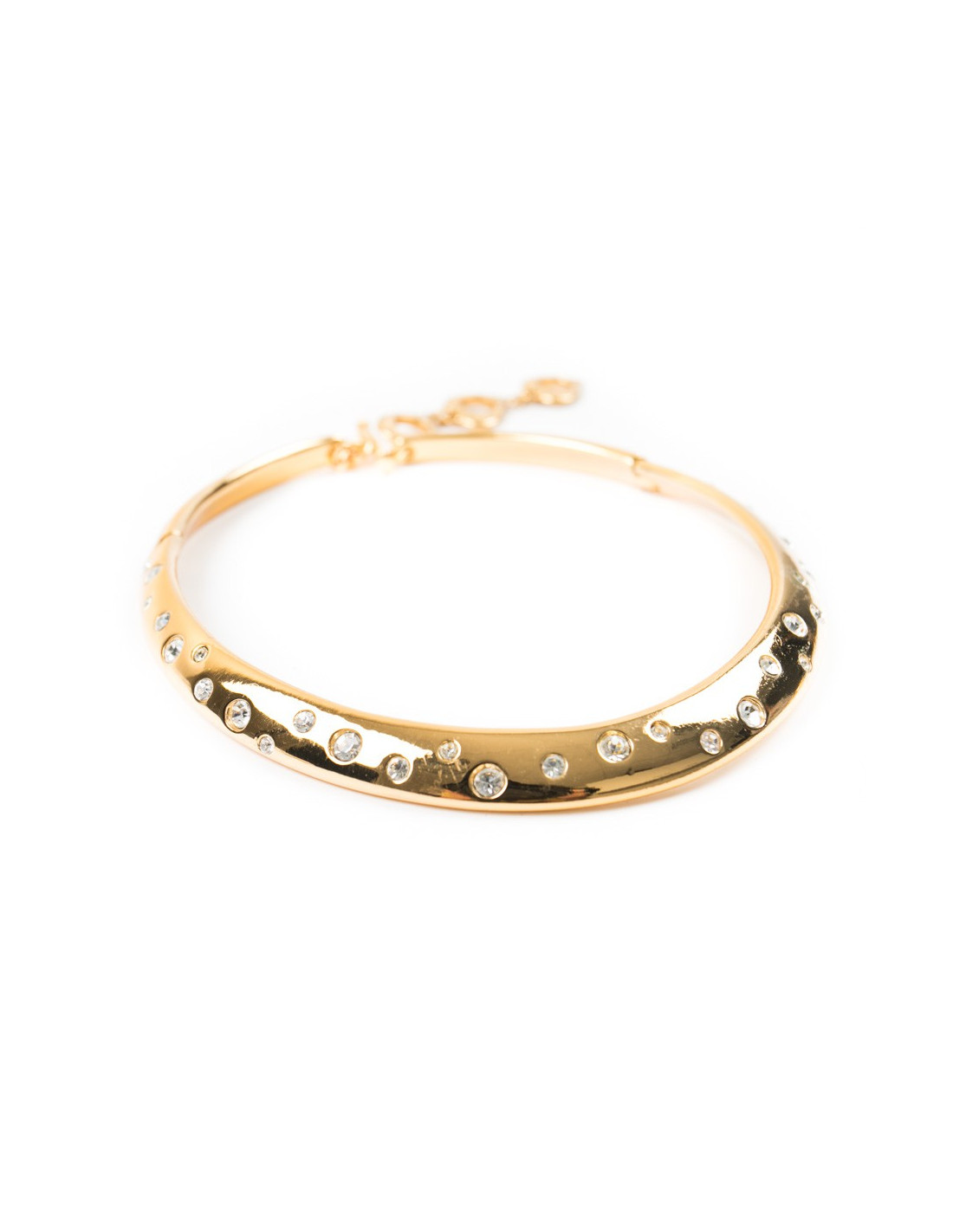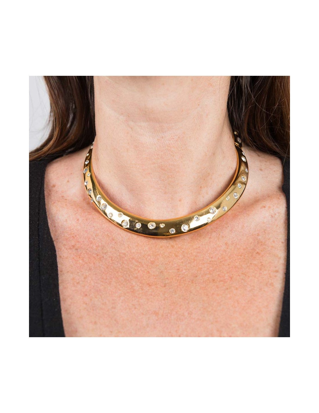 Le collier est articulé, serti de strass. Il présente des micro-rayures d'usage. Fermoir en T.
