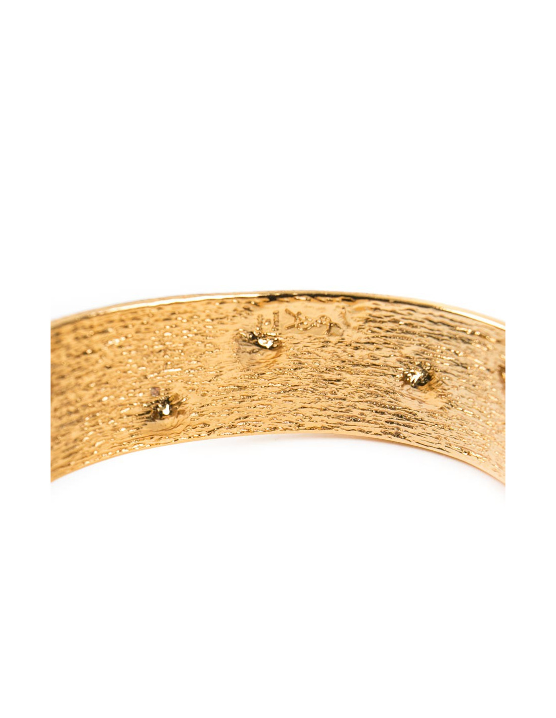 Le bracelet est articulé. Il manque un strass. Micro-rayures sur le métal.