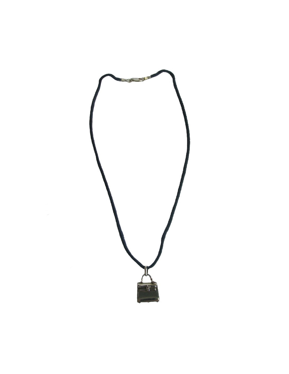 Collier cordon HERMES avec pendentif amulette 'sac Kelly' en argent