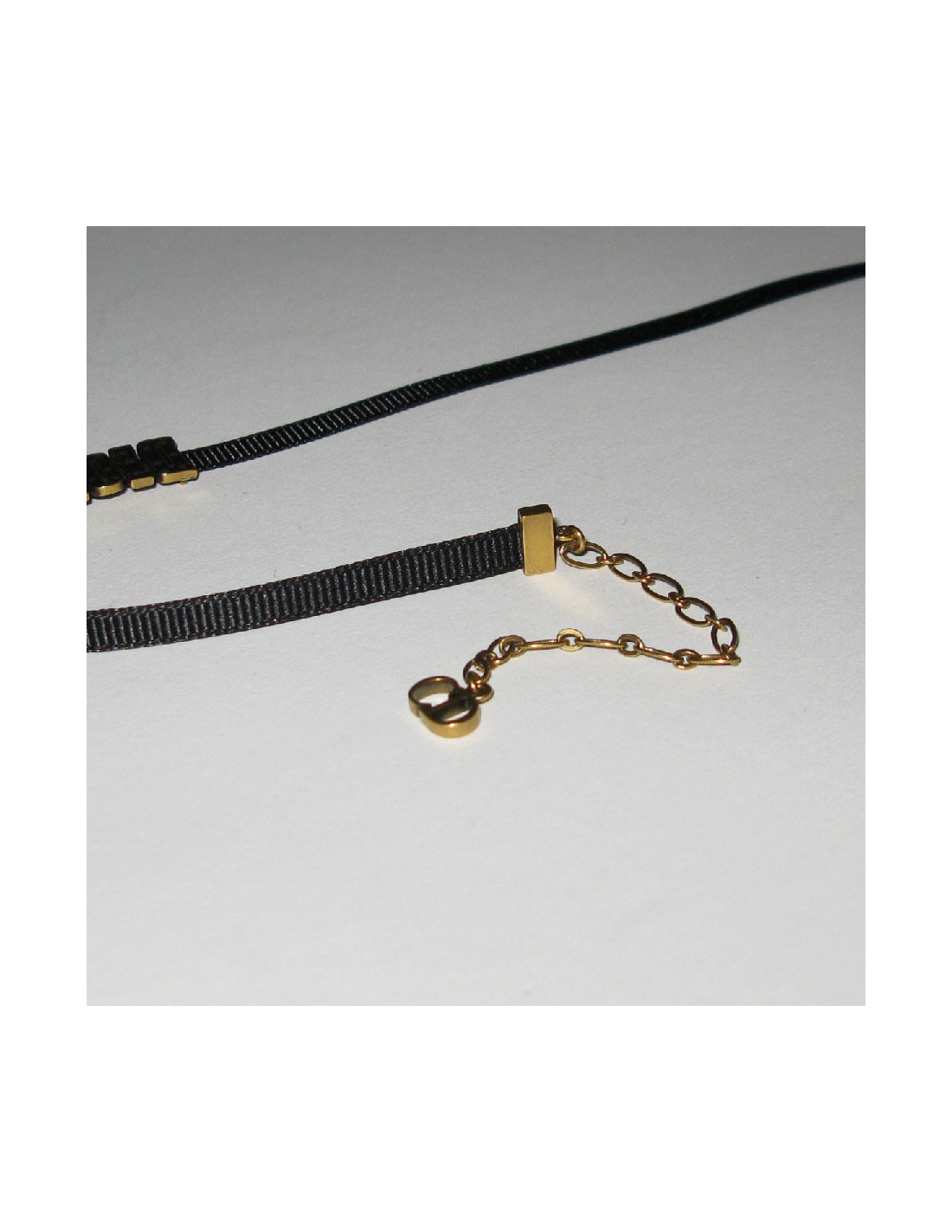 Collier "DIOR" ras de cou en gros grain noir et métal doré