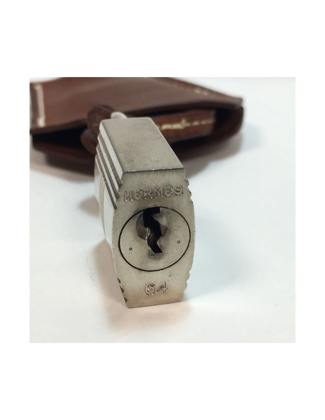 Collier Cadenas & clochette Hermès en cuir; En très bon état. Made in France. Petite trace noire sur le cuir (voir photo). À l’origine il s’agissait certainement d’une montre kelly cadenas en lieu et place du simple cadenas actuel.
