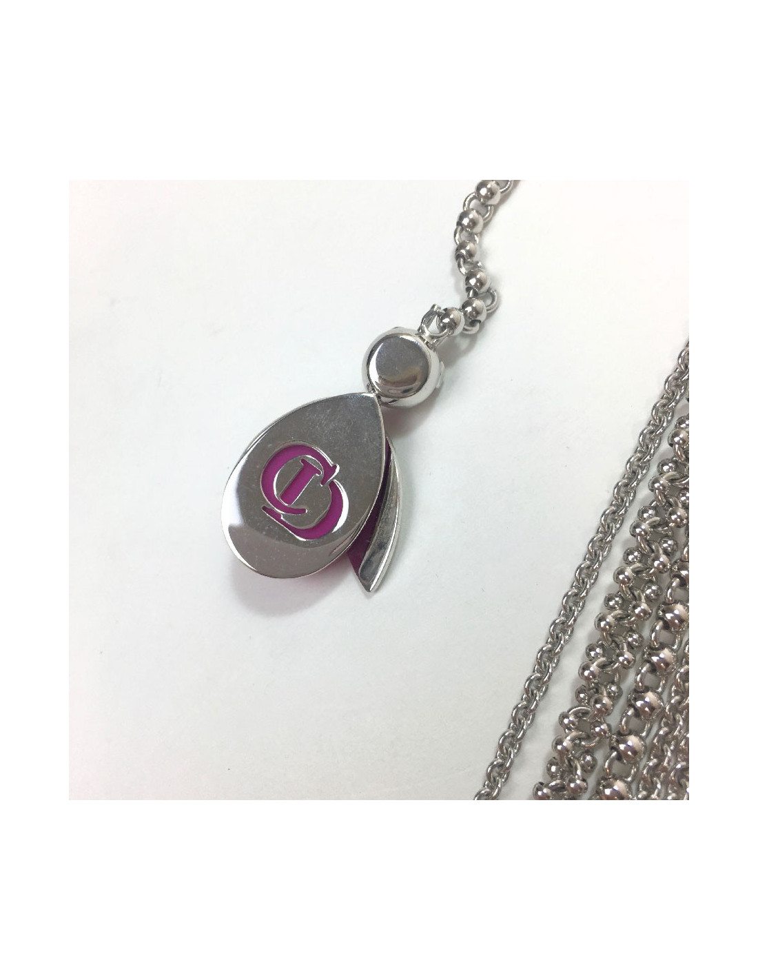 Sautoir DIOR multirangs en métal argenté