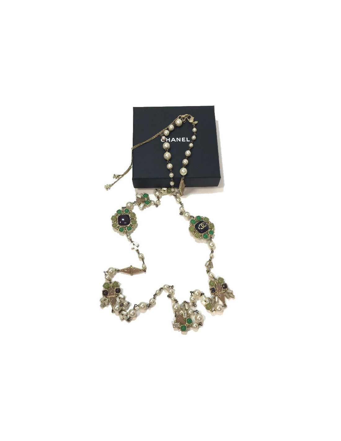 Ras de cou vintage CHANEL pâte de verre camélias et perles