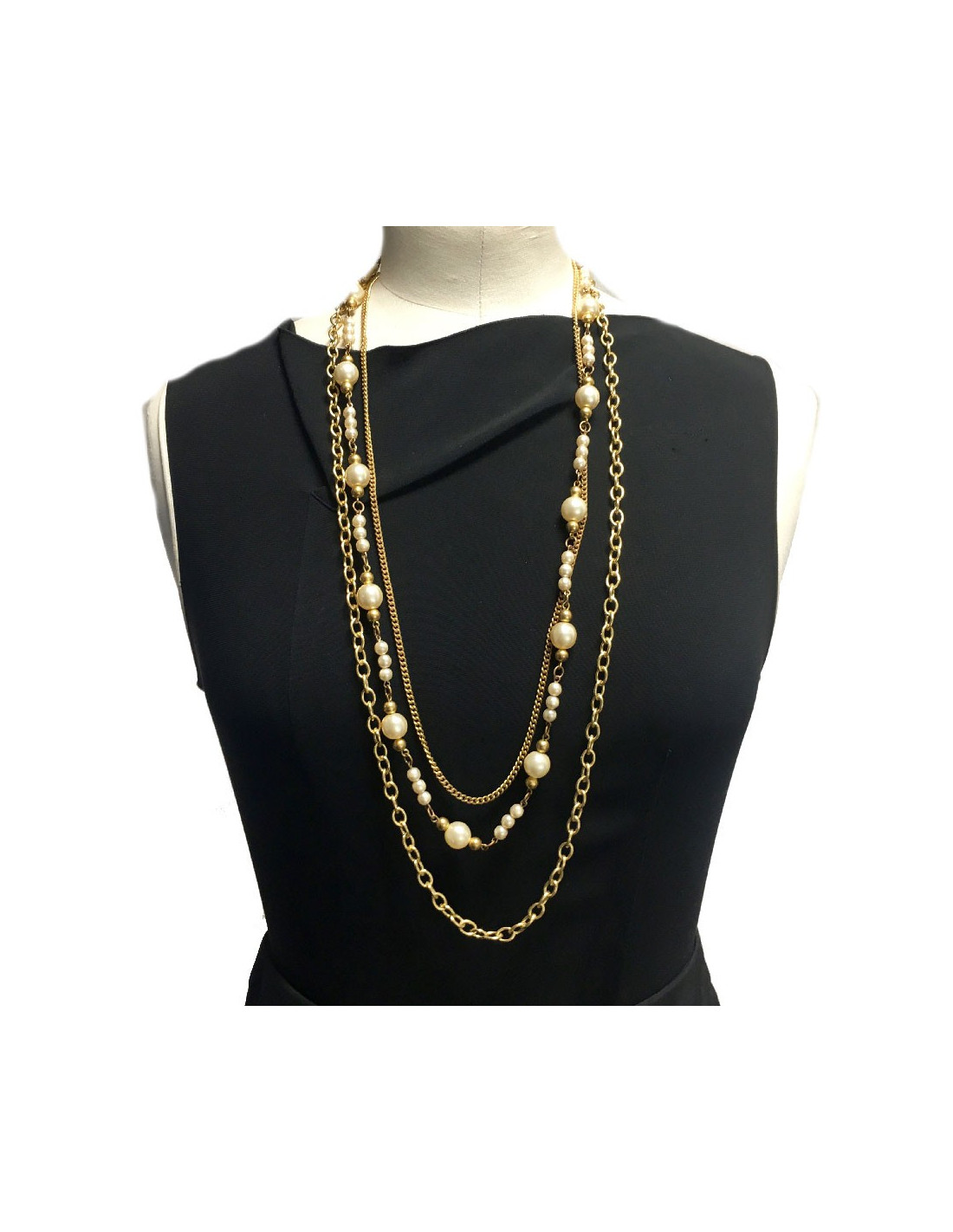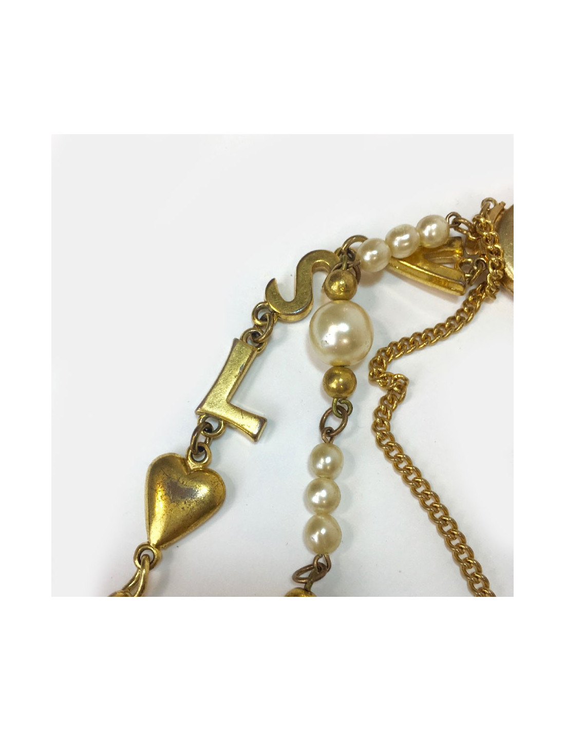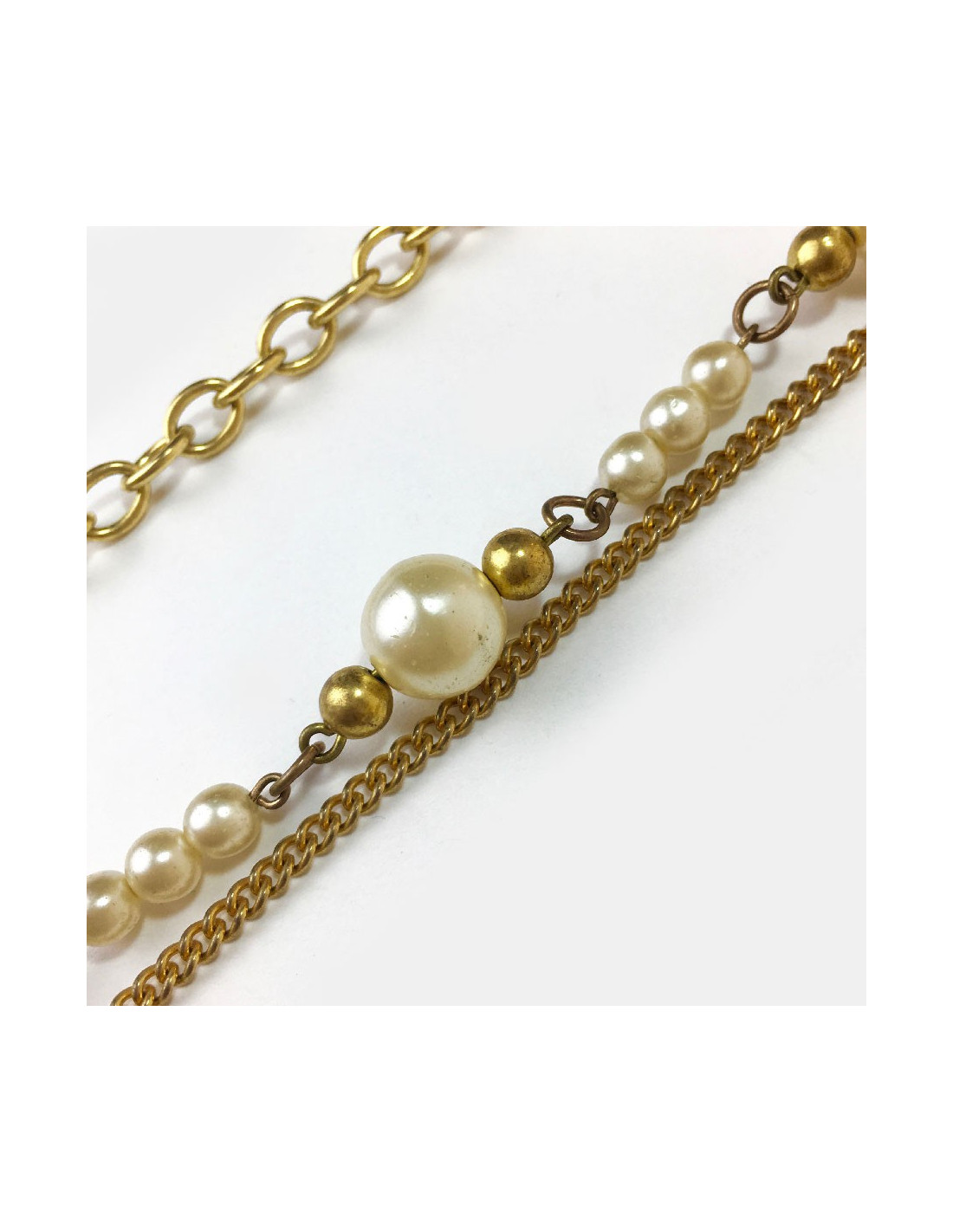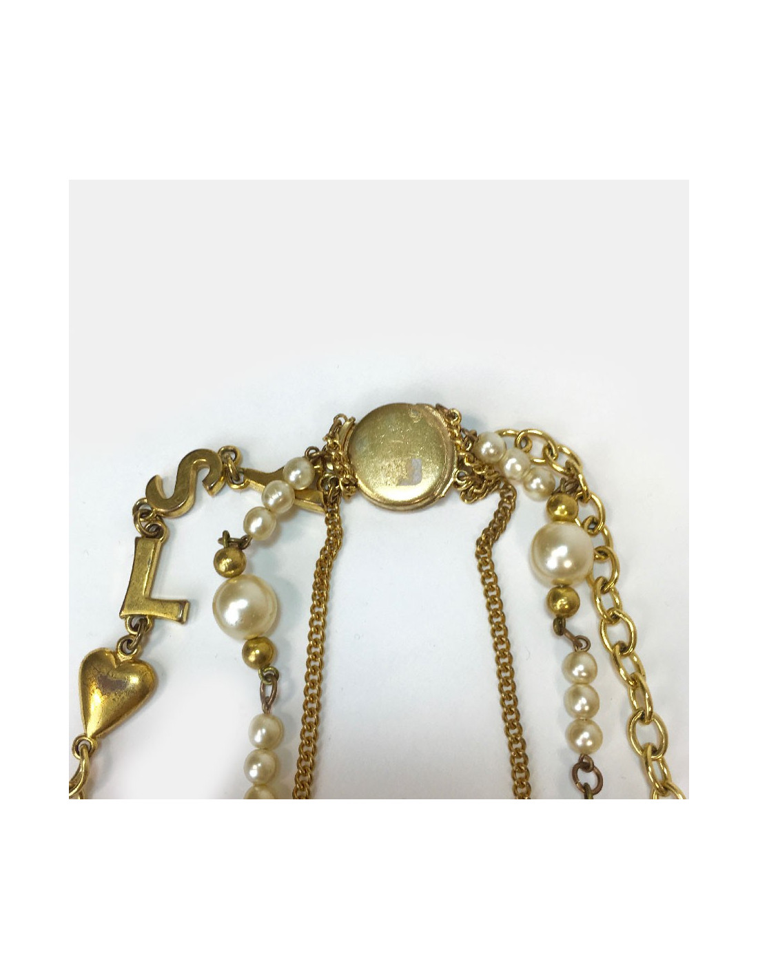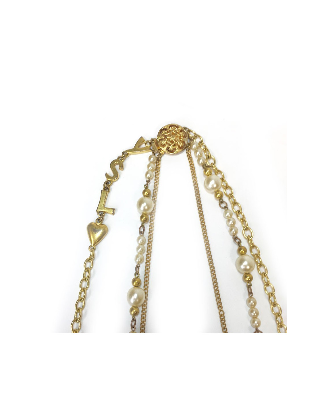 Collier YVES SAINT LAURENT vintage multi rangs de chaines dorées et perles
