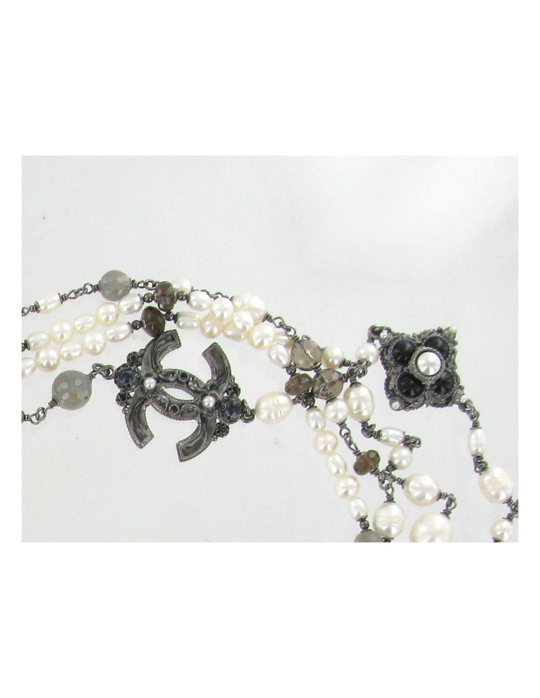 Sautoir long CHANEL en ruthénium et perles