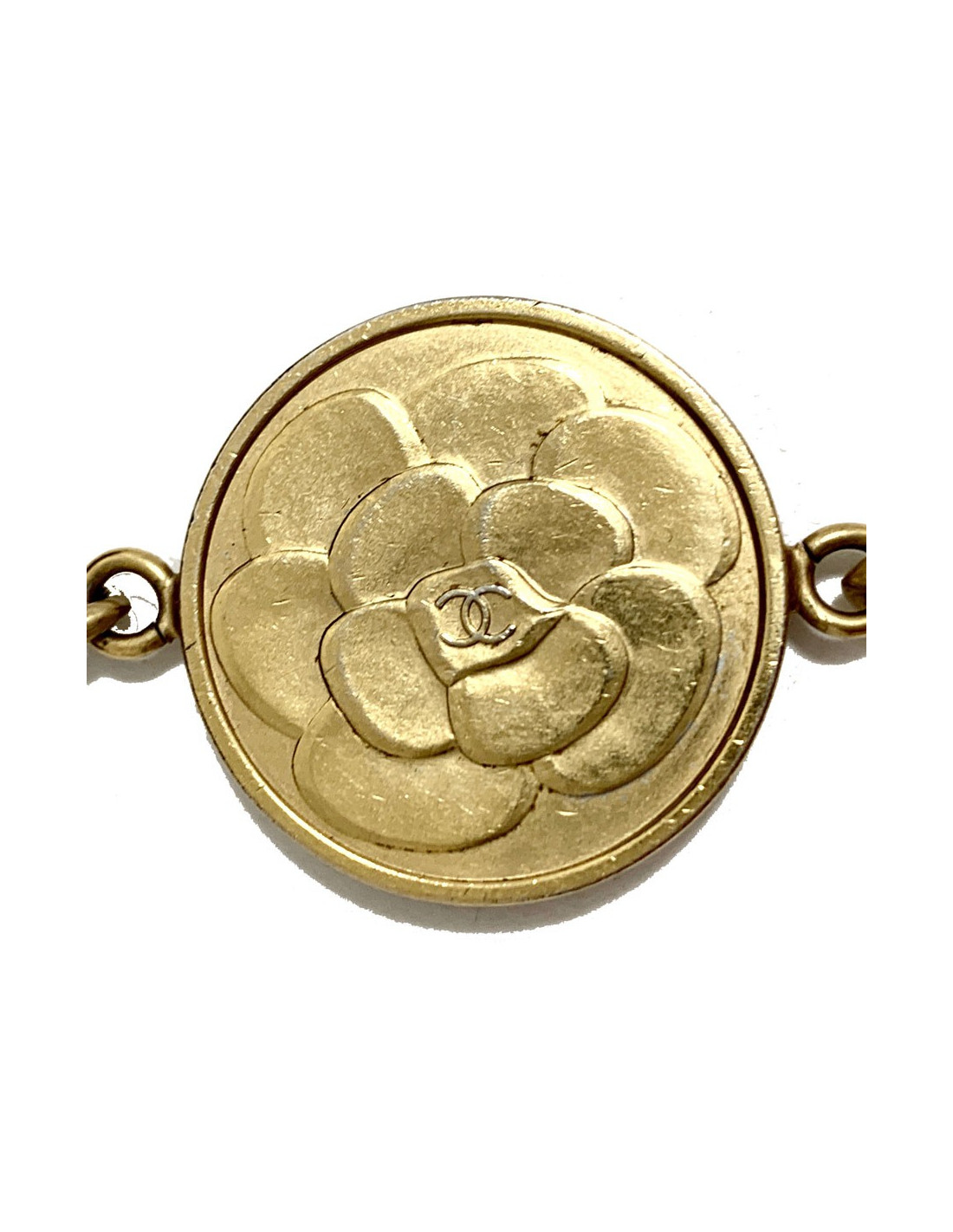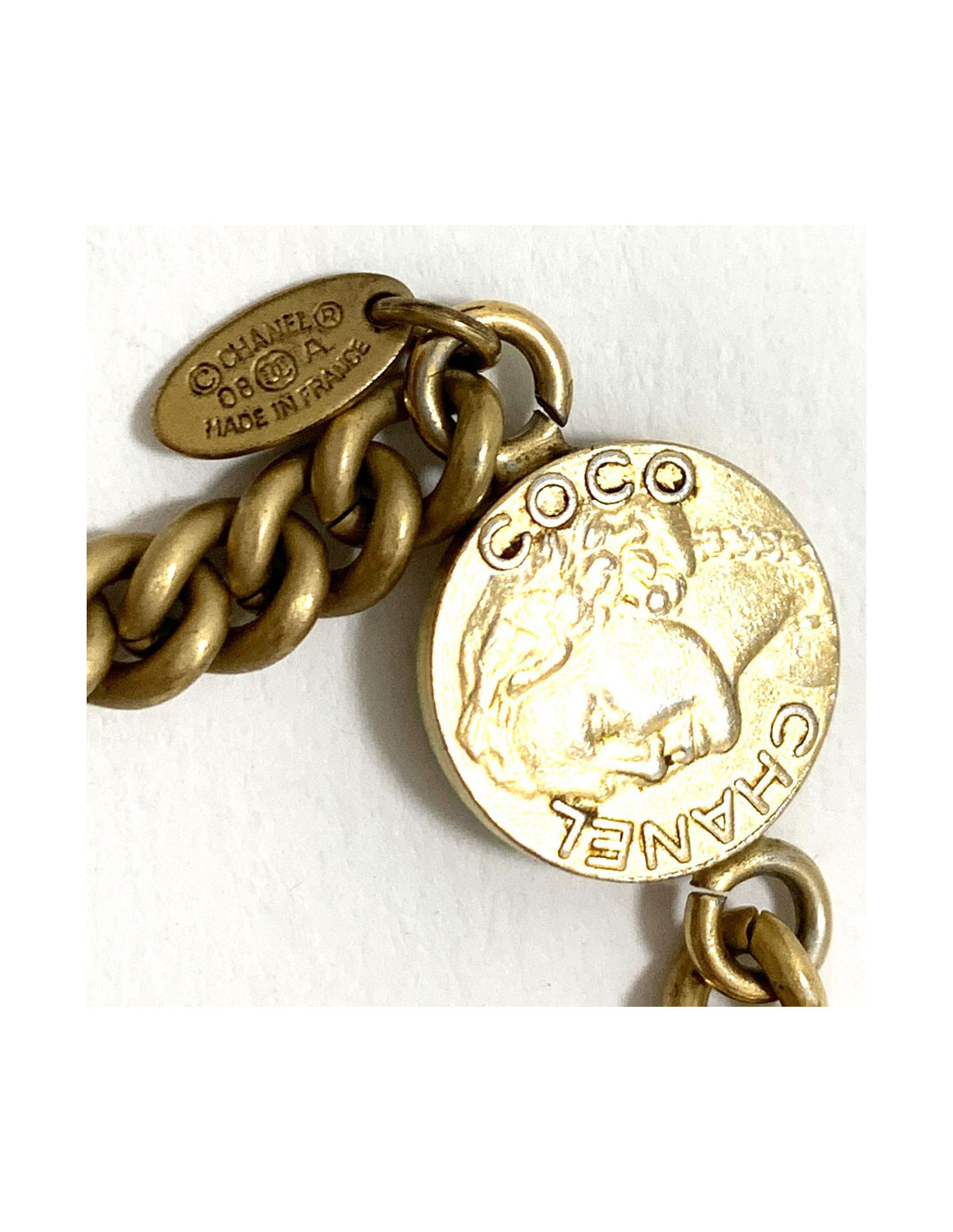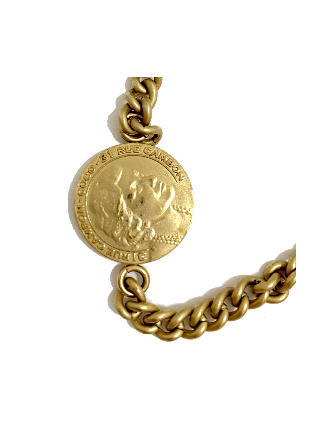 Détails sur ce sautoir CHANEL médaille Coco dorée