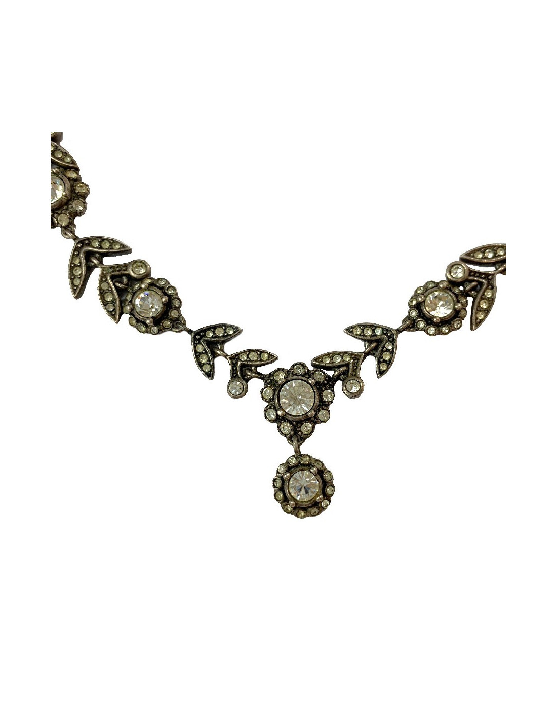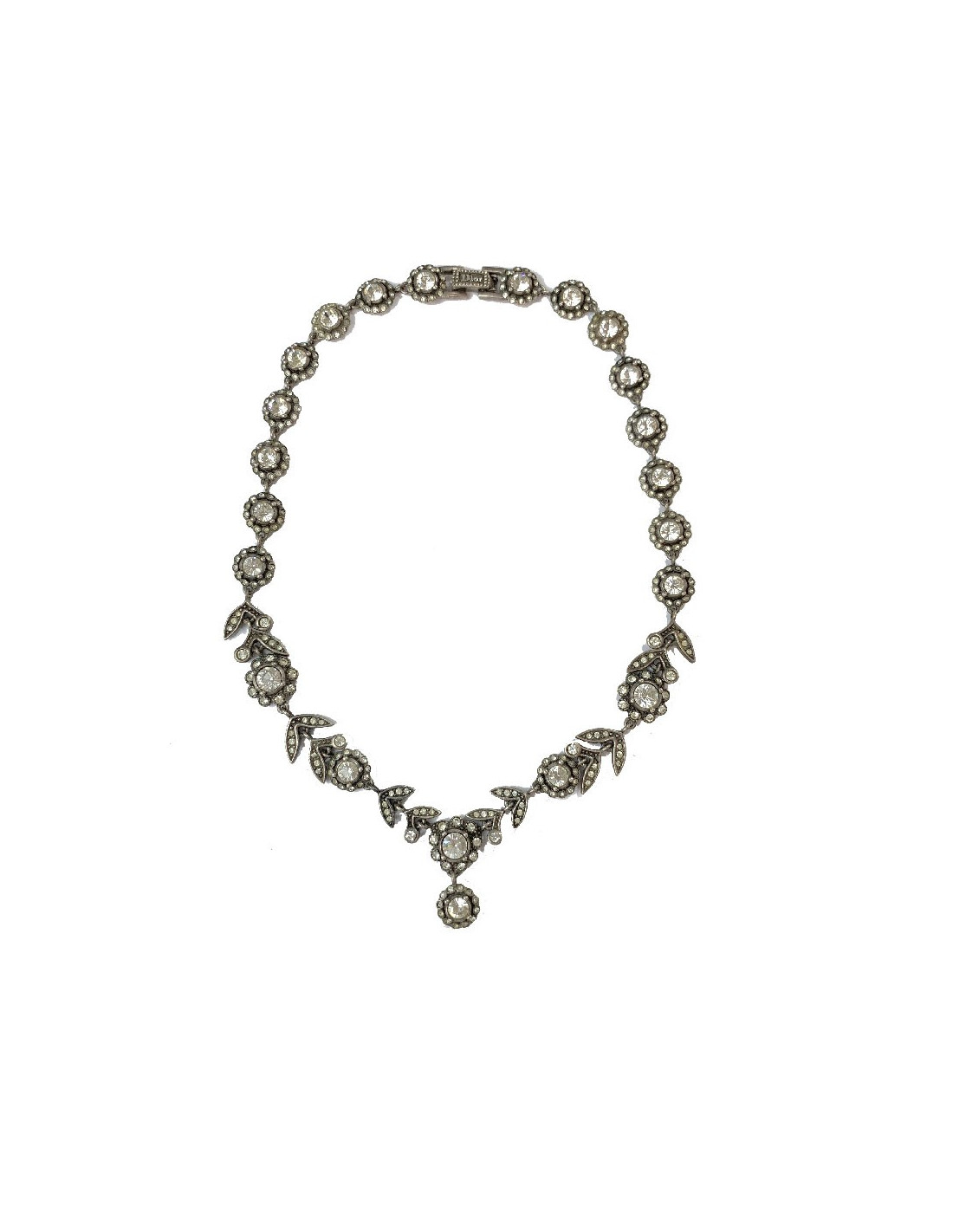 Vous avez dit vintage? ce collier DIOR représentant des fleurs et des feuilles serties entièrement de strass est vintage et tendance à la fois. C'est un collier presque ras de cou qui embellira votre décolleté.