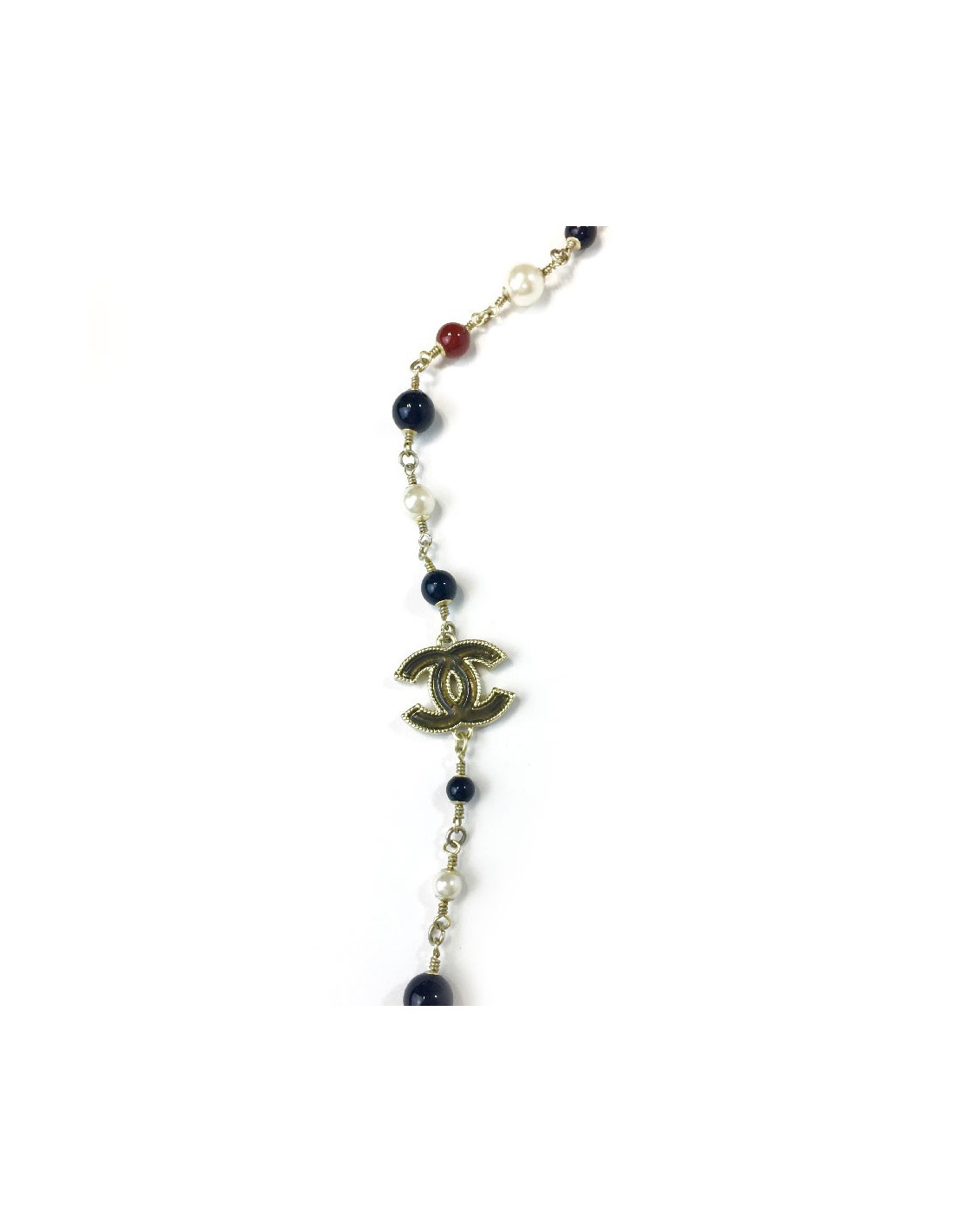 Sautoir CHANEL doré et perles multicolores