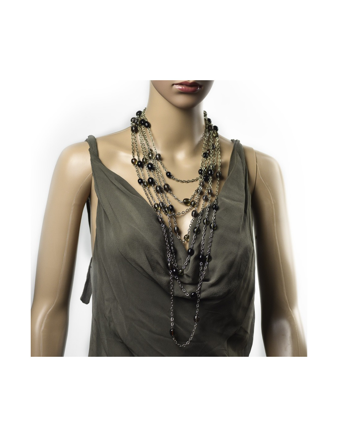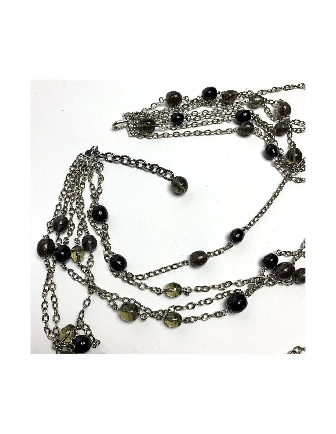 Le sautoir n'a jamais été porté. L'attache est réglable. Il mesure de 42 à 56 centimètres au fermoir.