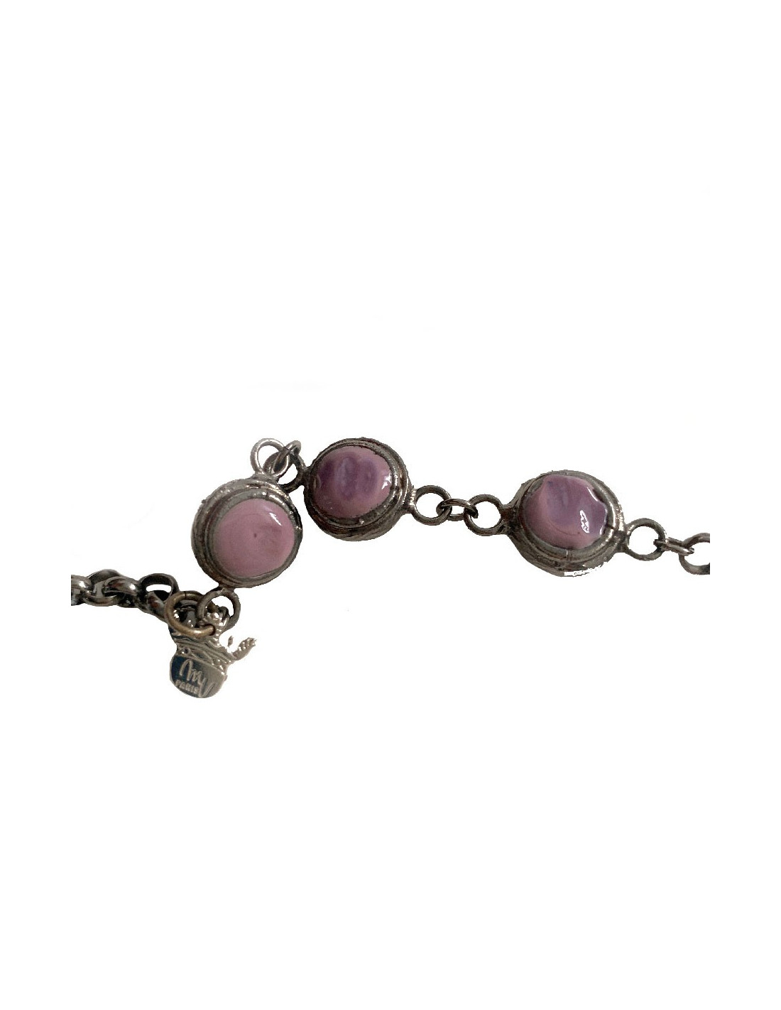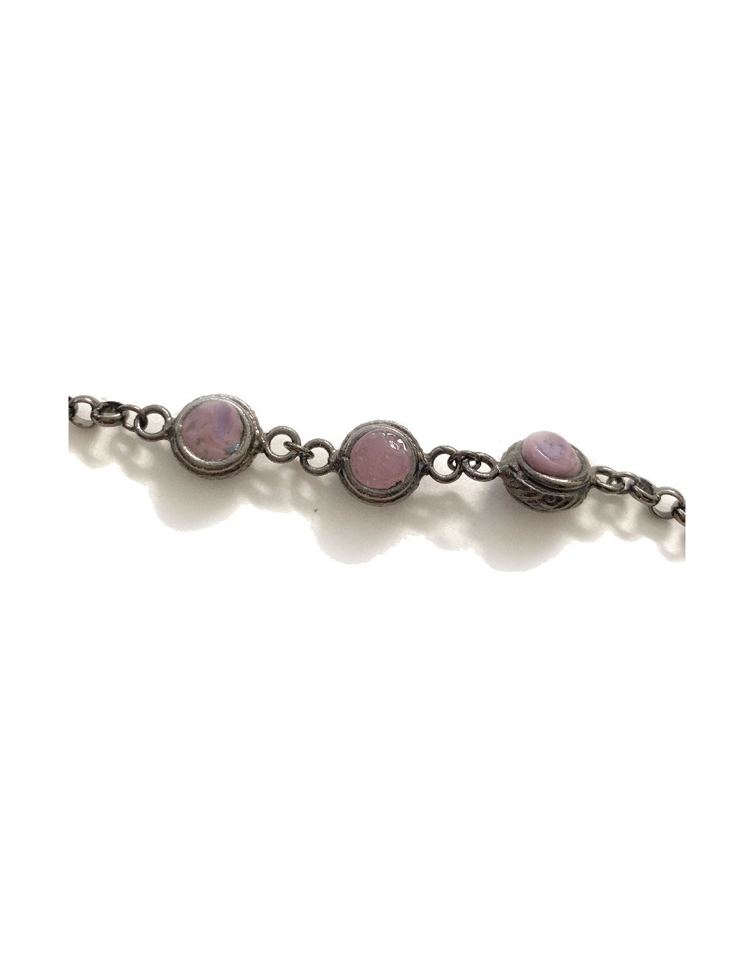Sautoir MARGUERITE DE VALOIS mauve et bordeaux en pâte de verre - Détails