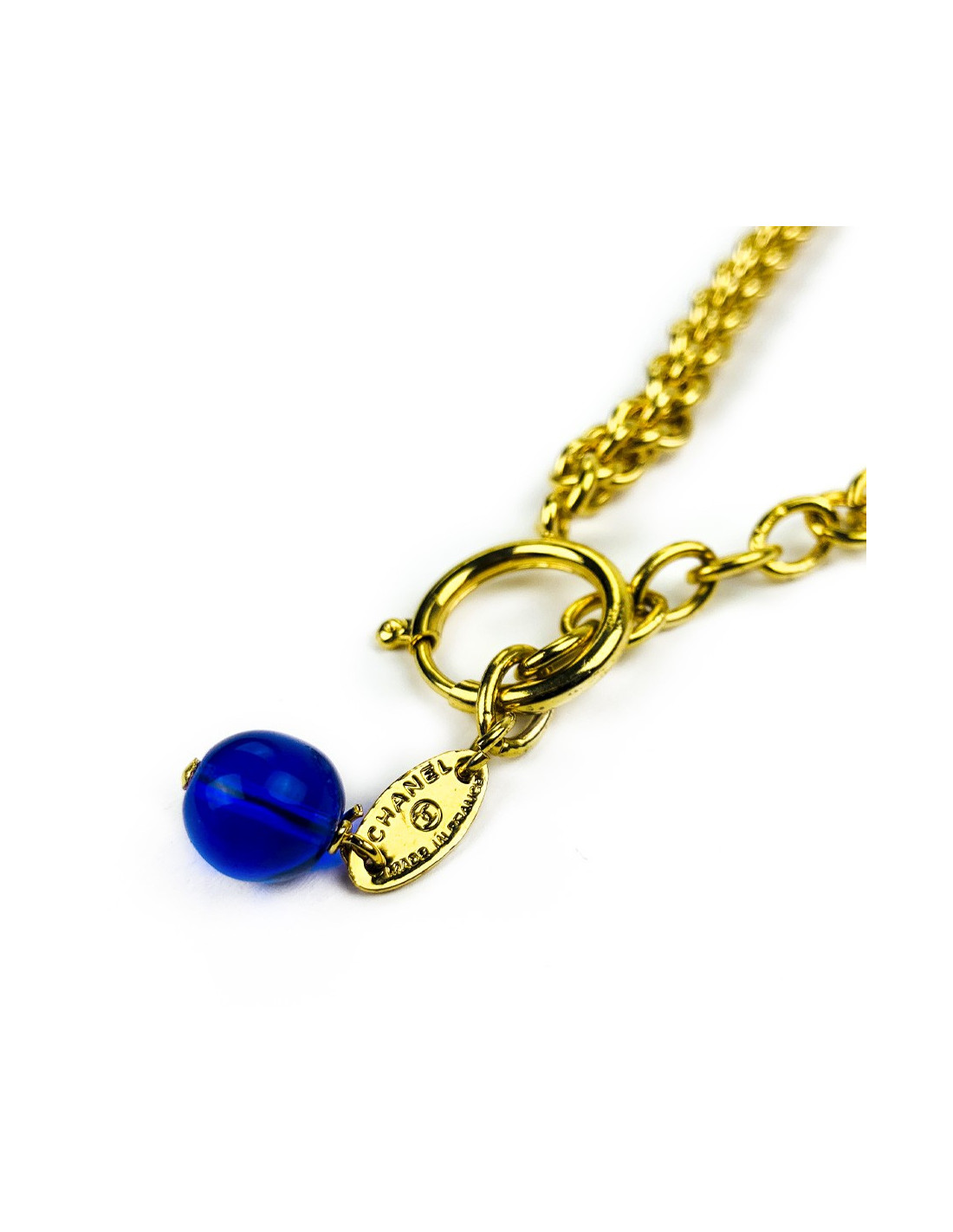 Plastron Chanel pâte de verre et chaîne dorée